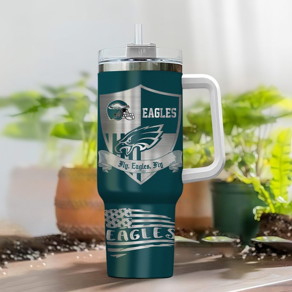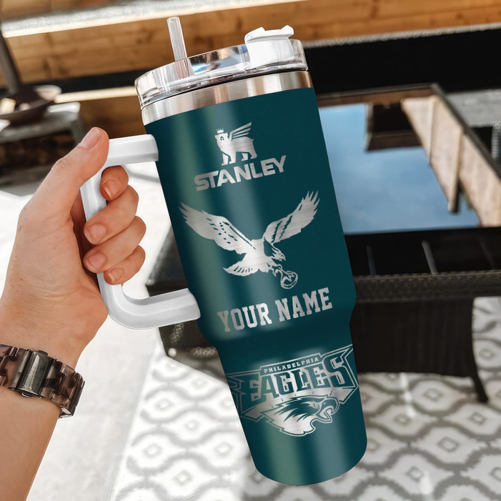 Philadelphia Eagles Nfl Silver Logo Custom Stanley Quencher 40Oz Stainless Steel Tumbler With Handle