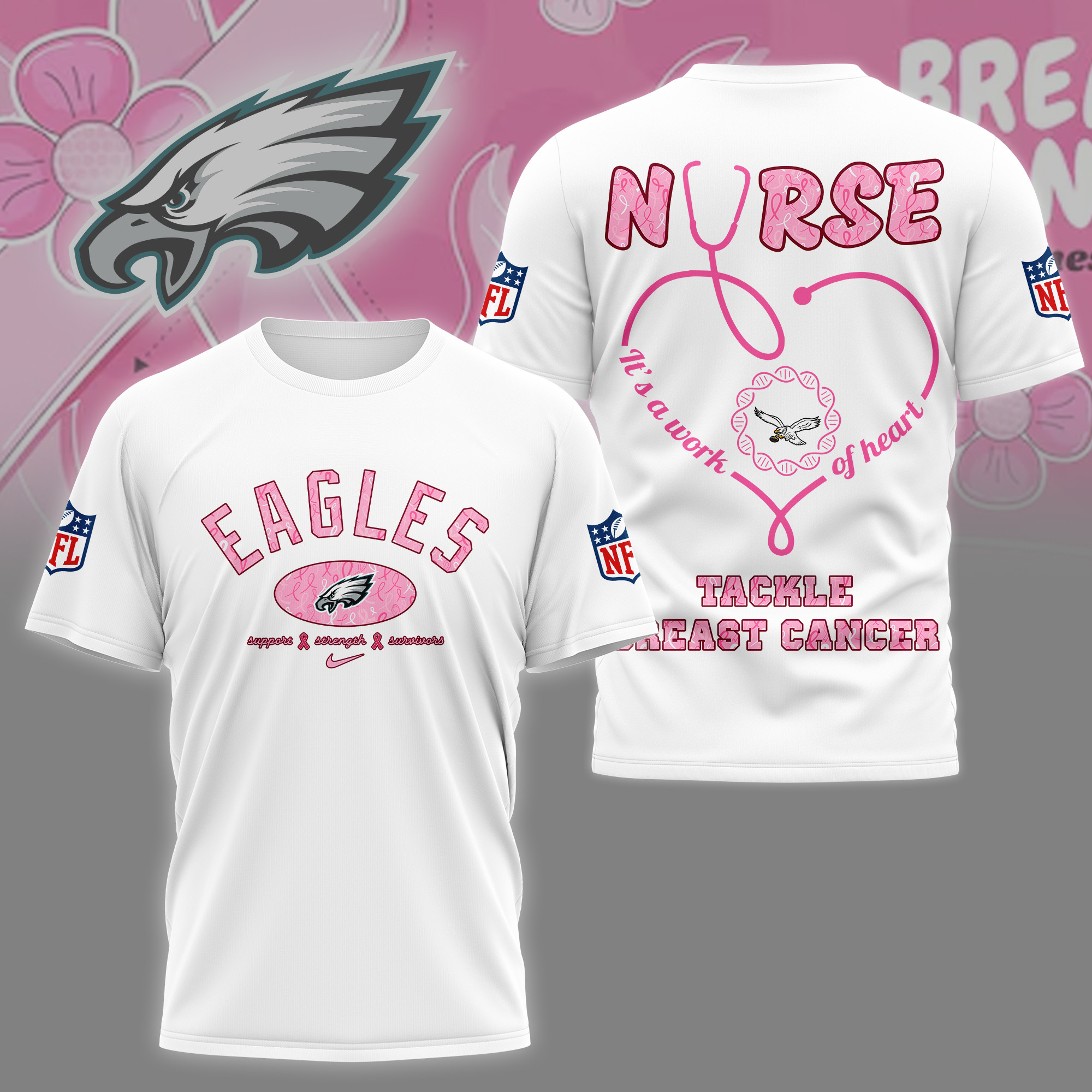 Philadelphia Eagles Premium Nurse Breast Cancer Awareness 3D Shirt
