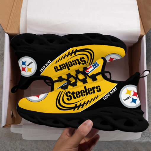 Pittsburgh Steelers Max Soul Shoes Sneakers Printed White And Black Sole For Men And Women