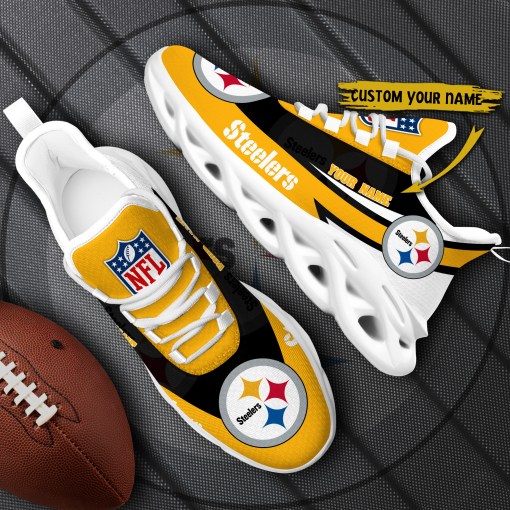 Pittsburgh Steelers NFL Max Soul Shoes Sneakers Printed White And Black Sole For Men And Women