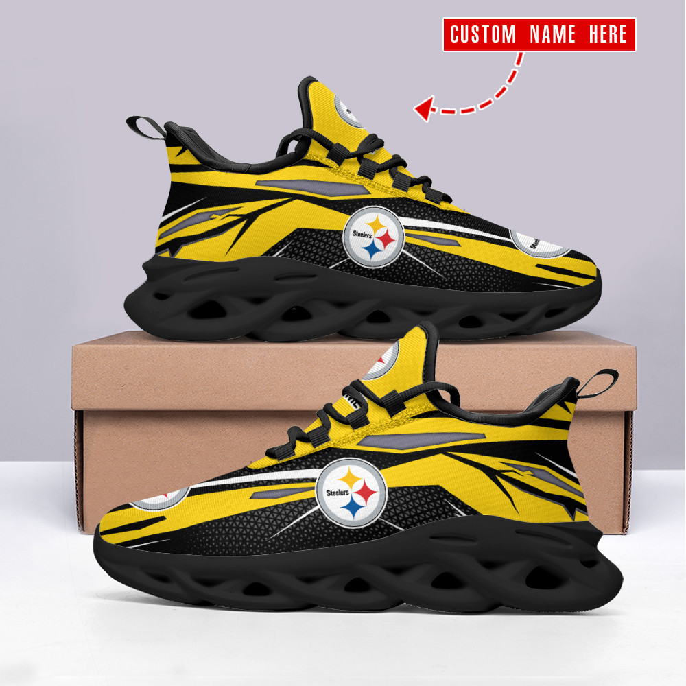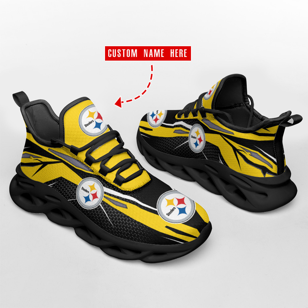 Pittsburgh Steelers NFL Max Soul Shoes Sneakers Printed White And Black Sole For Men And Women