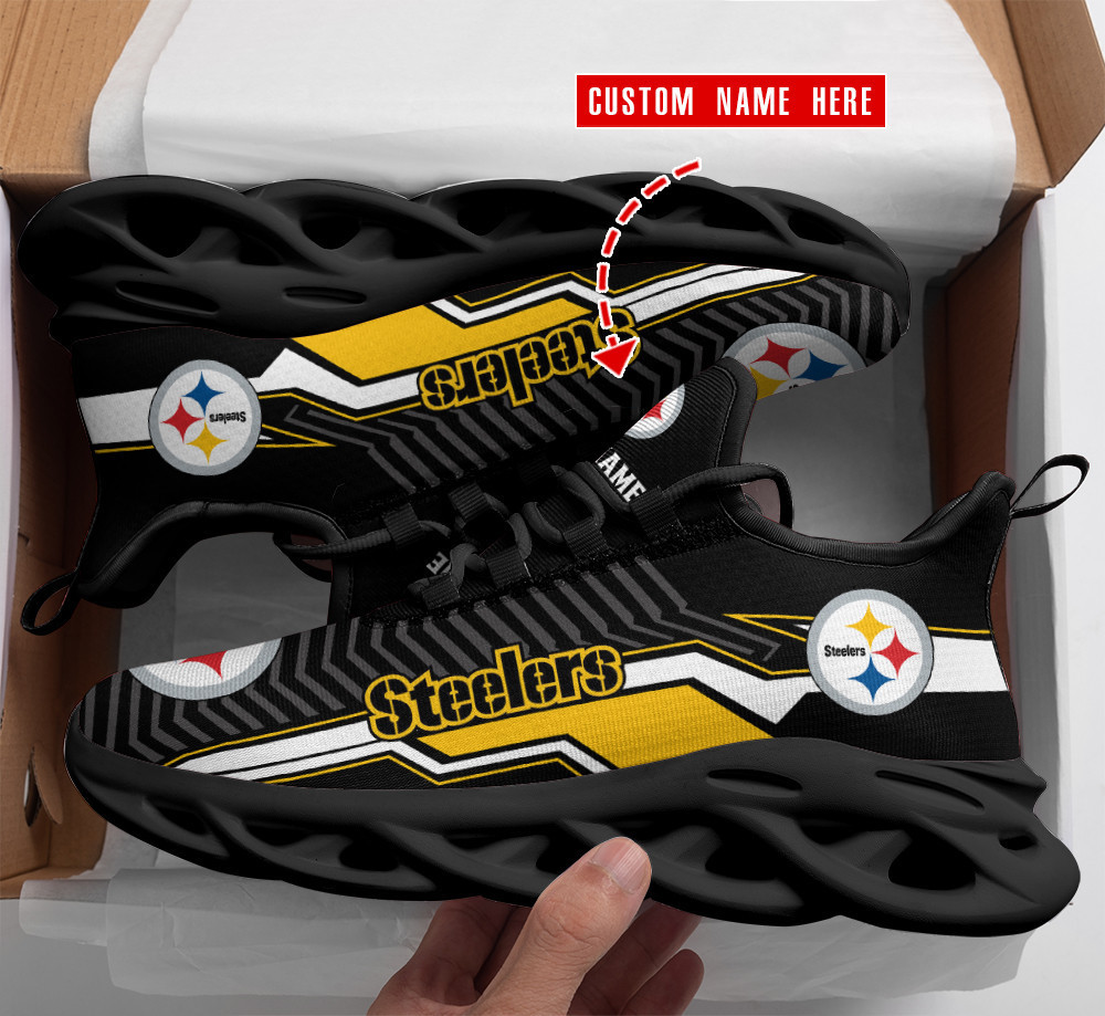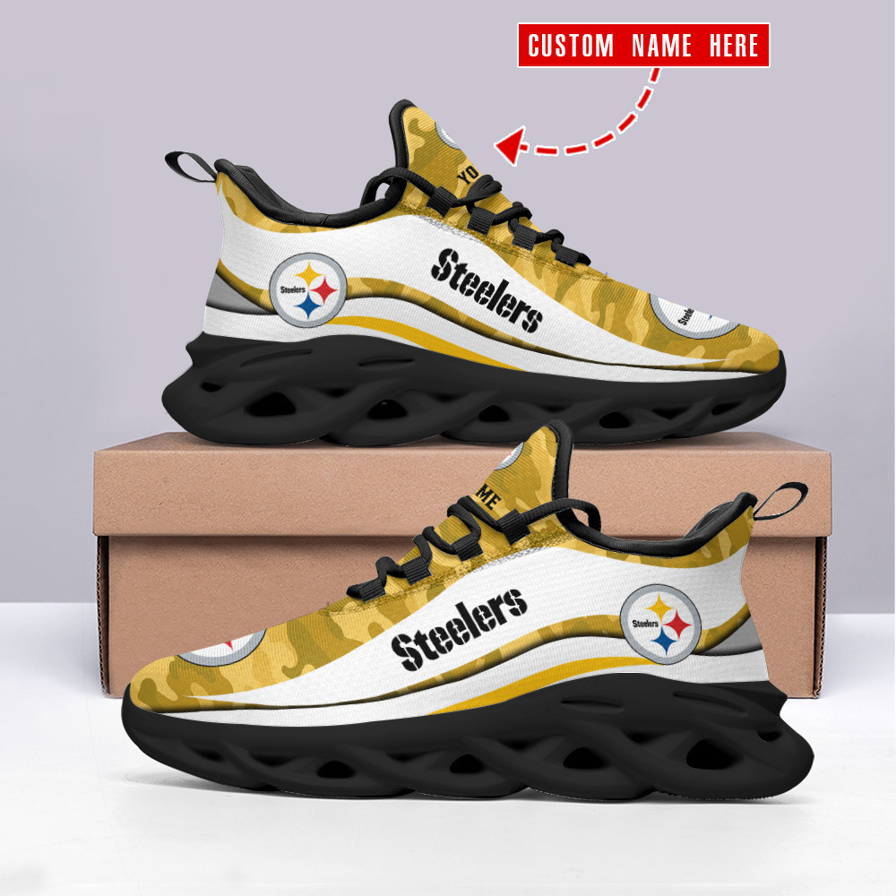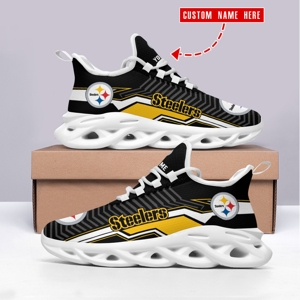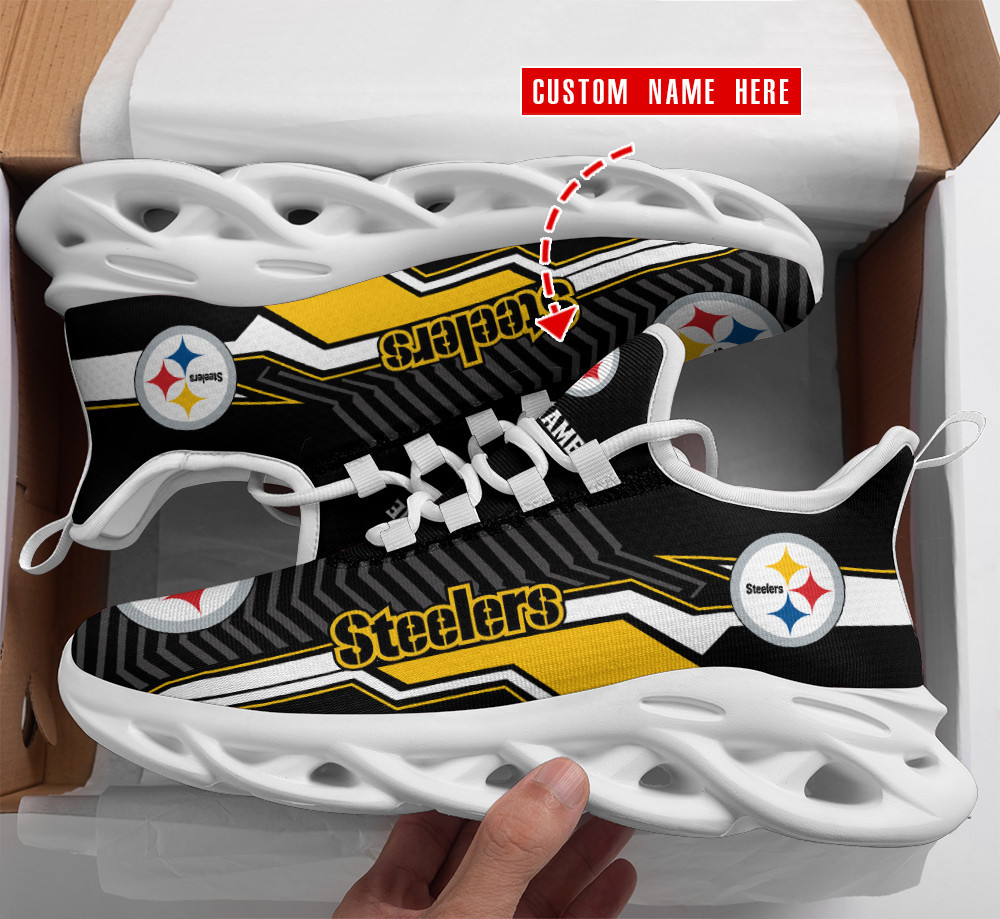 Pittsburgh Steelers NFL Max Soul Shoes Sneakers Printed White And Black Sole For Men And Women