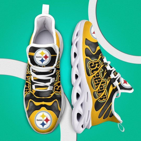 Pittsburgh Steelers NFL Max Soul Shoes Sneakers Printed White And Black Sole For Men And Women