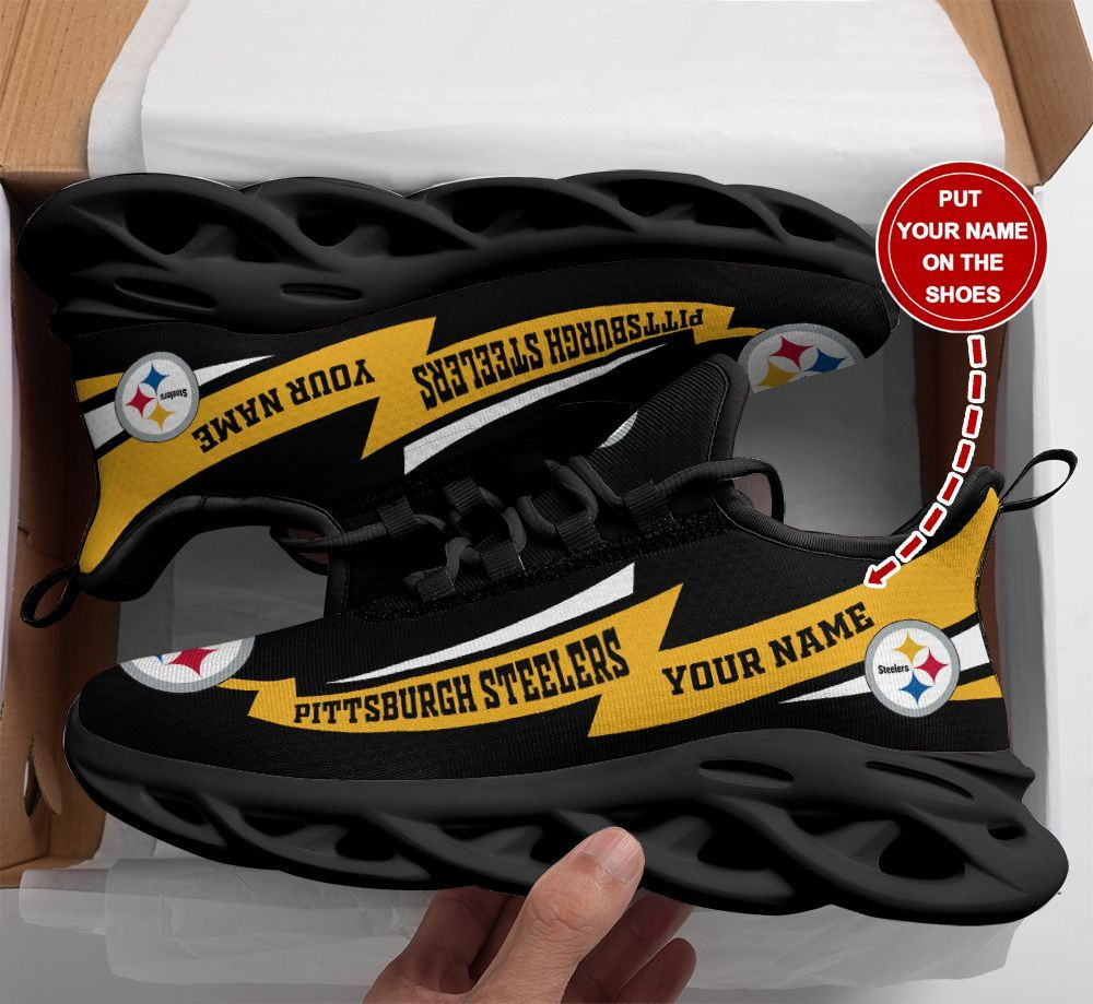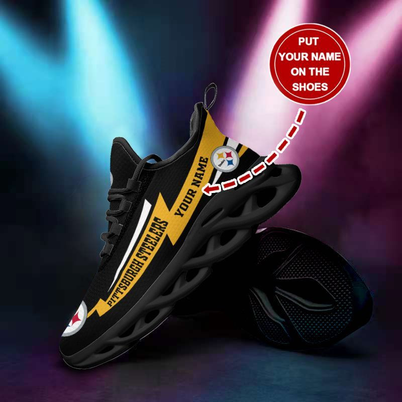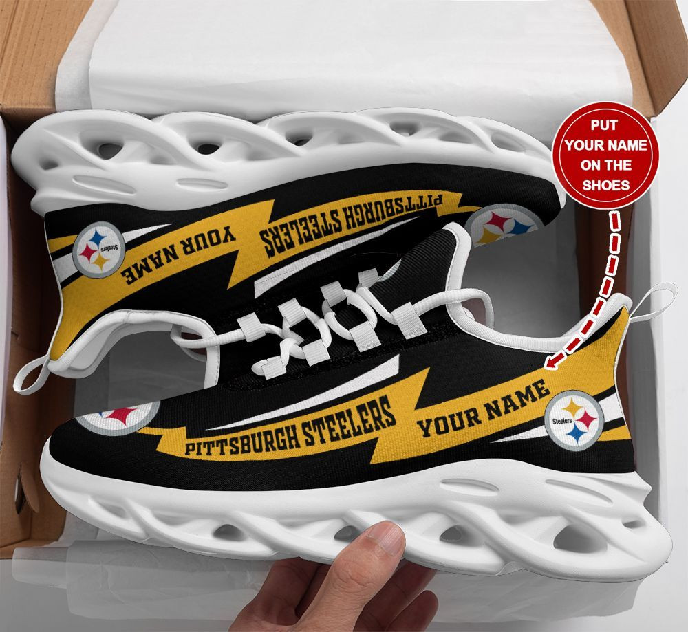 Pittsburgh Steelers NFL Max Soul Shoes Sneakers Printed White And Black Sole For Men And Women