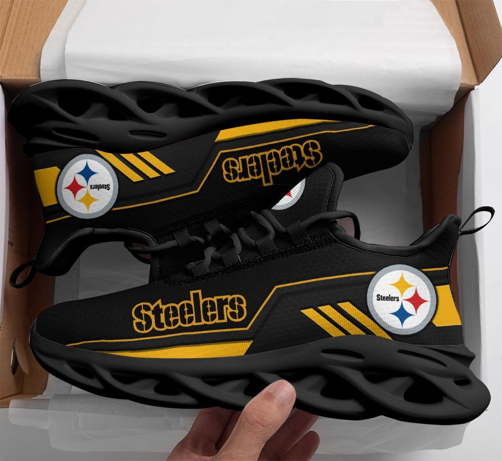 Pittsburgh Steelers NFL Max Soul Shoes Sneakers Printed White And Black Sole For Men And Women