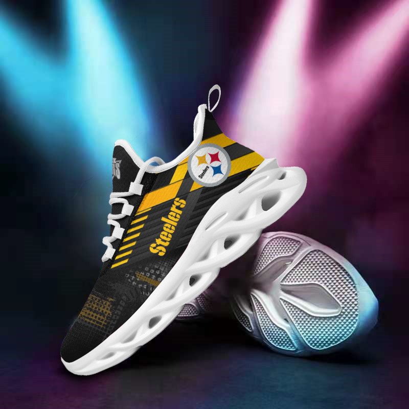 Pittsburgh Steelers NFL Max Soul Shoes Sneakers Printed White And Black Sole For Men And Women