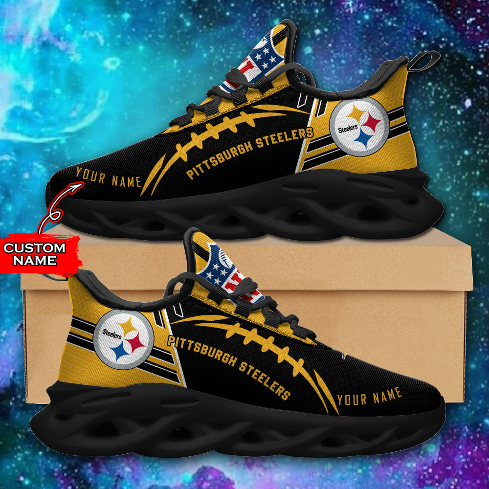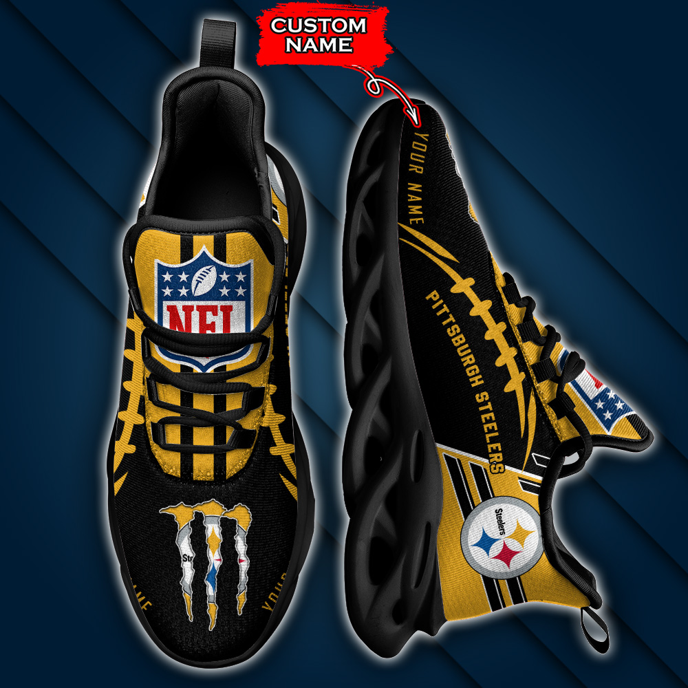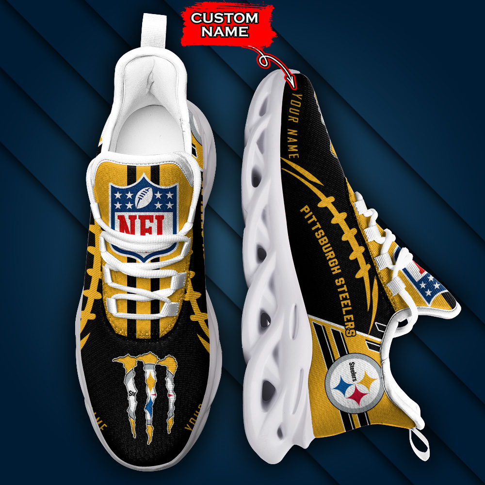 Pittsburgh Steelers NFL Max Soul Shoes Sneakers Printed White And Black Sole For Men And Women