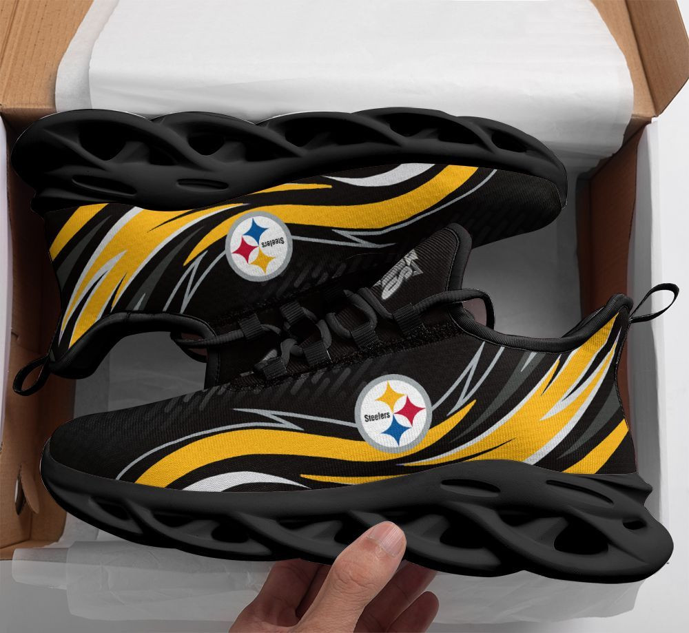 Pittsburgh Steelers NFL Max Soul Shoes Sneakers Printed White And Black Sole For Men And Women