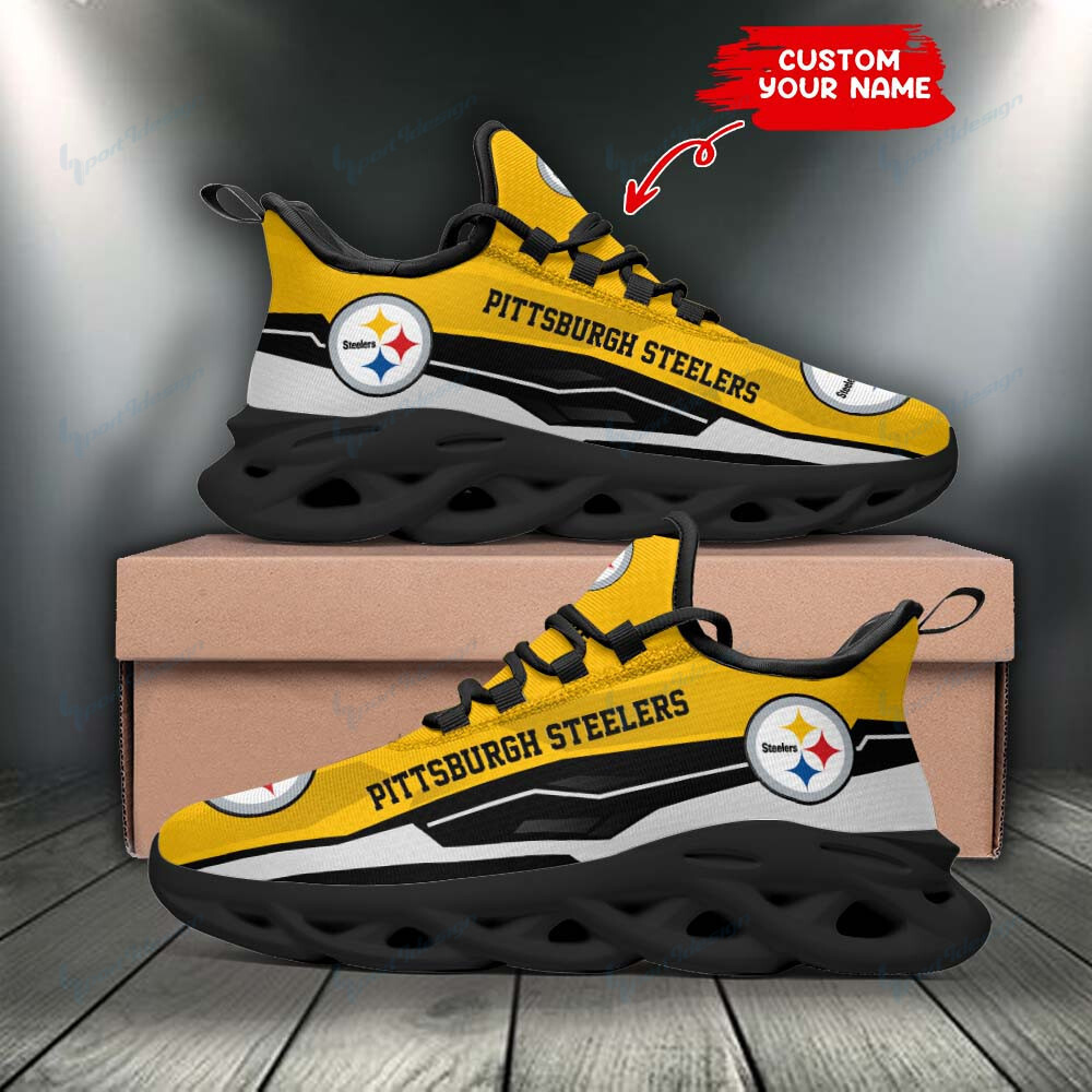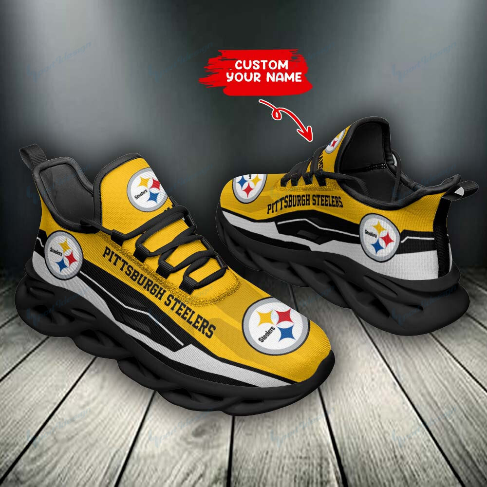 Pittsburgh Steelers NFL Max Soul Shoes Sneakers Printed White And Black Sole For Men And Women