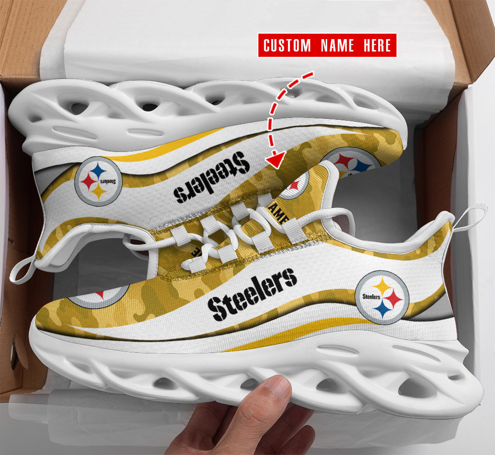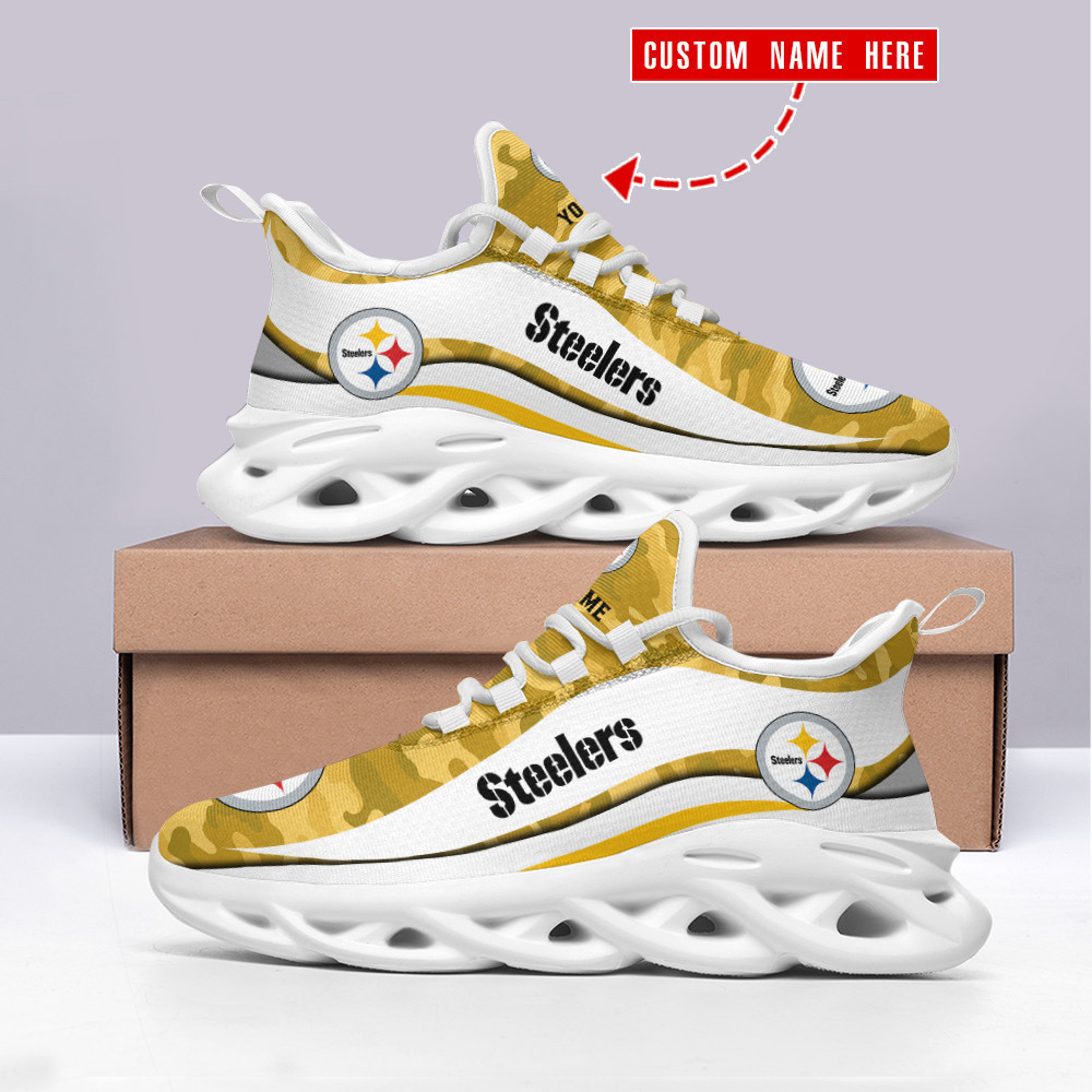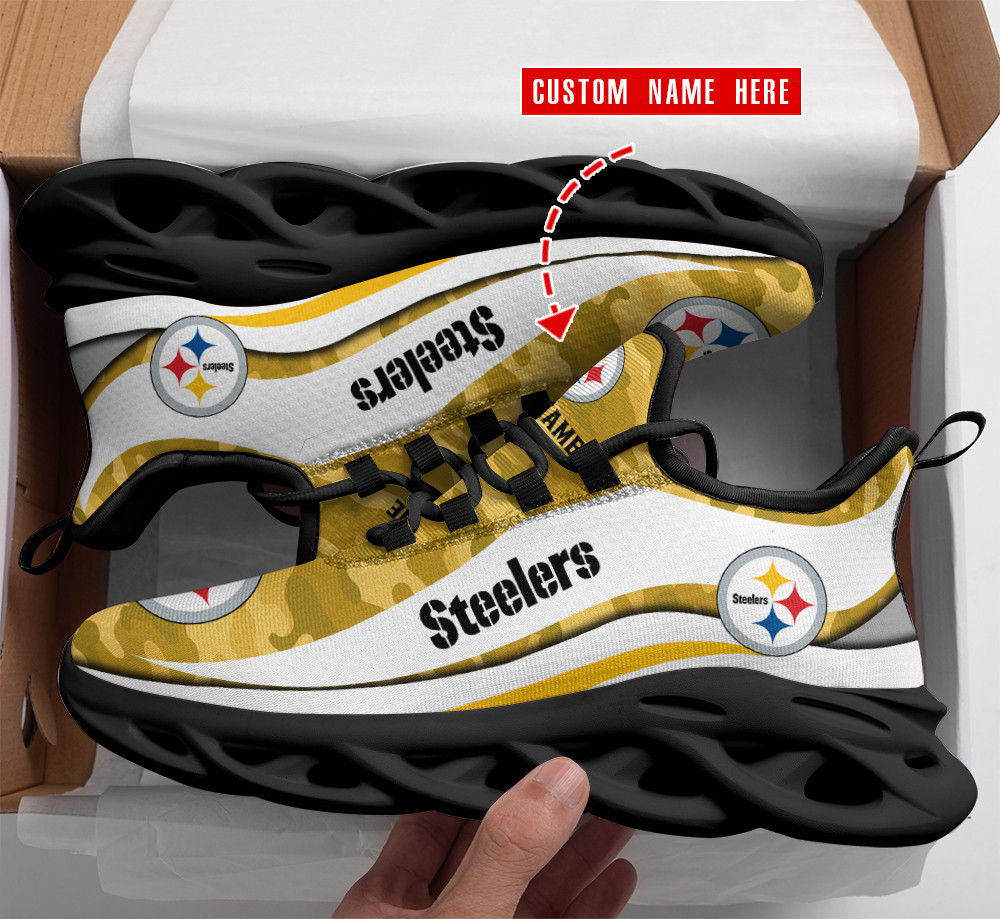 Pittsburgh Steelers NFL Max Soul Shoes Sneakers Printed White And Black Sole For Men And Women