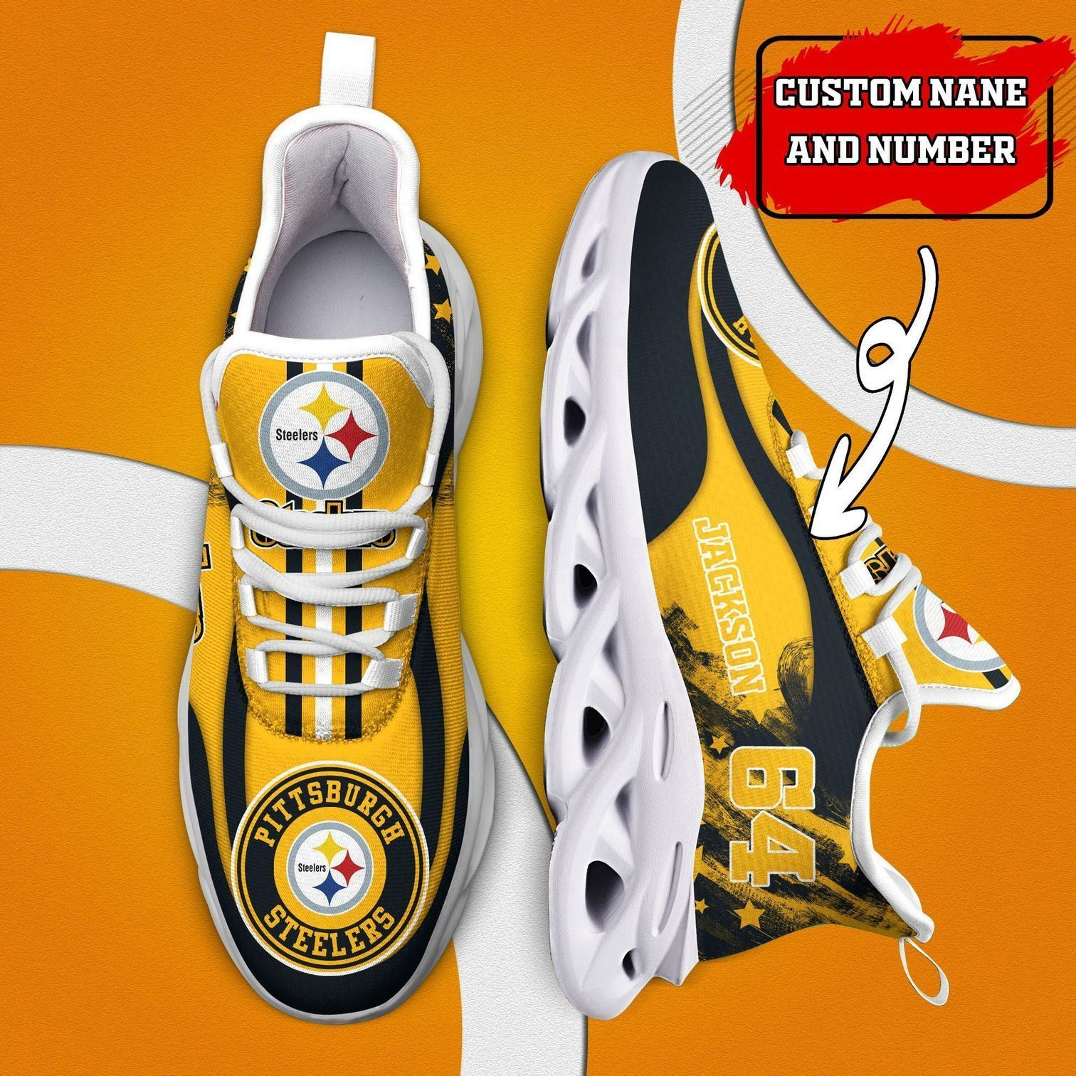 Pittsburgh Steelers NFL Max Soul Shoes Sneakers Printed White And Black Sole For Men And Women