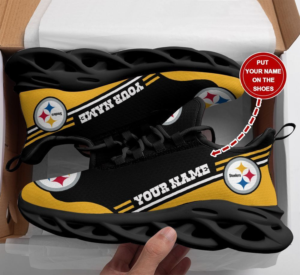 Pittsburgh Steelers NFL Max Soul Shoes Sneakers Printed White And Black Sole For Men And Women