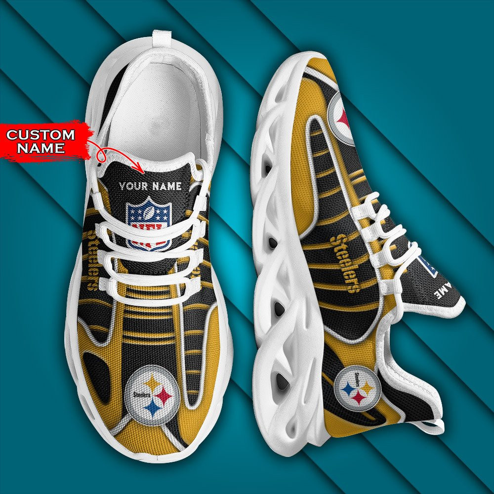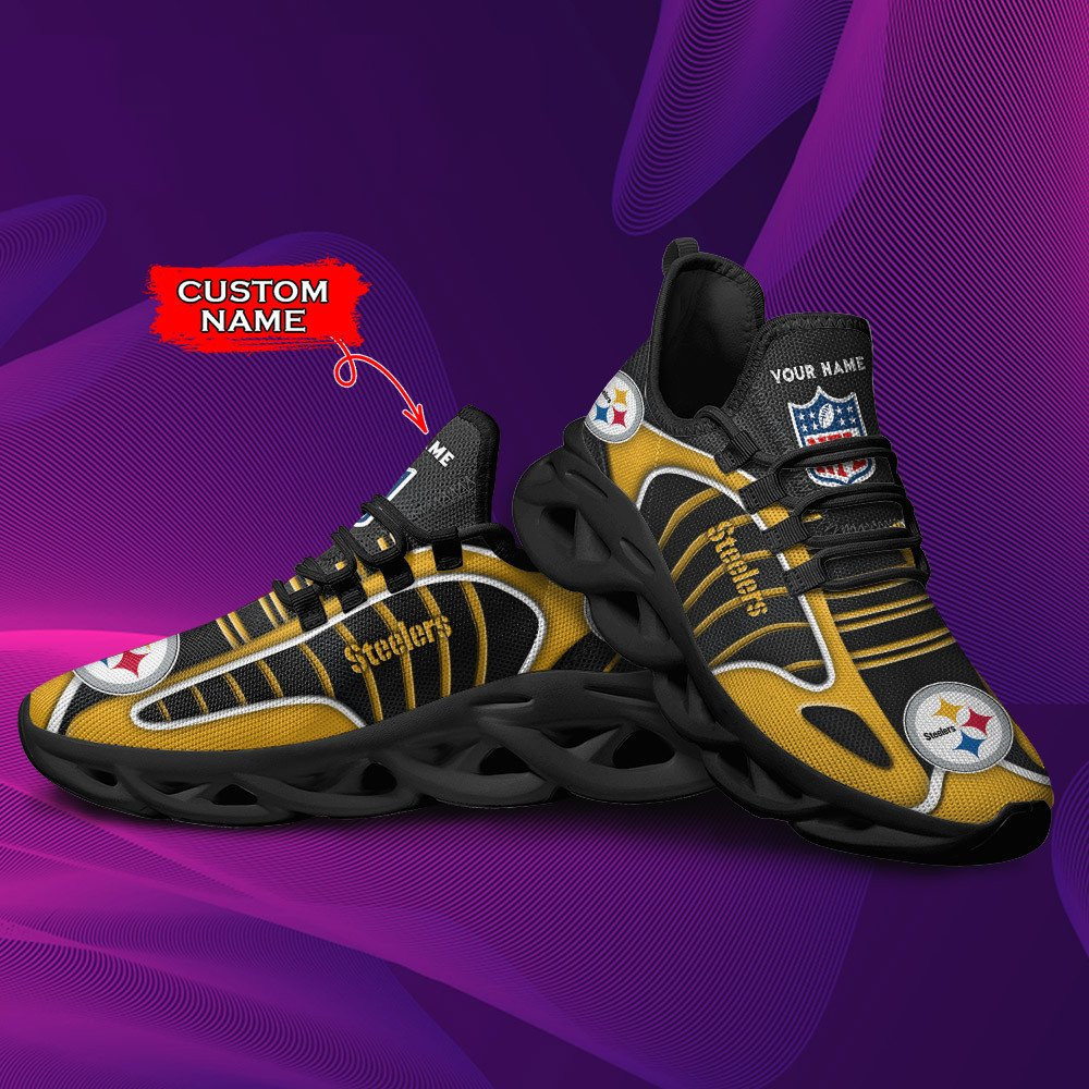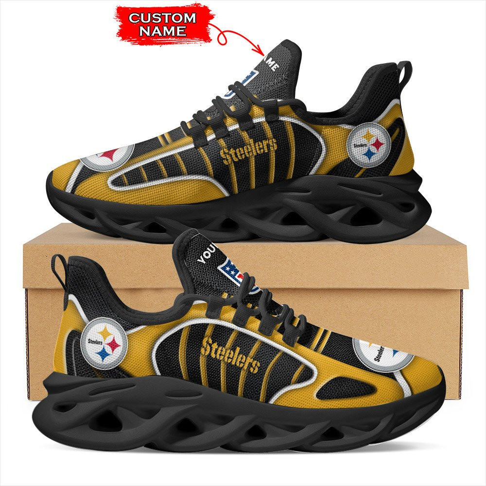 Pittsburgh Steelers NFL Max Soul Shoes Sneakers Printed White And Black Sole For Men And Women