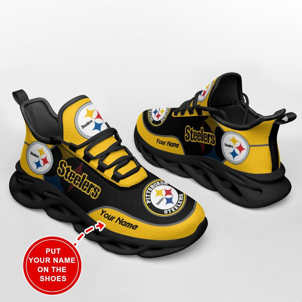 Pittsburgh Steelers NFL Max Soul Shoes Sneakers Printed White And Black Sole For Men And Women