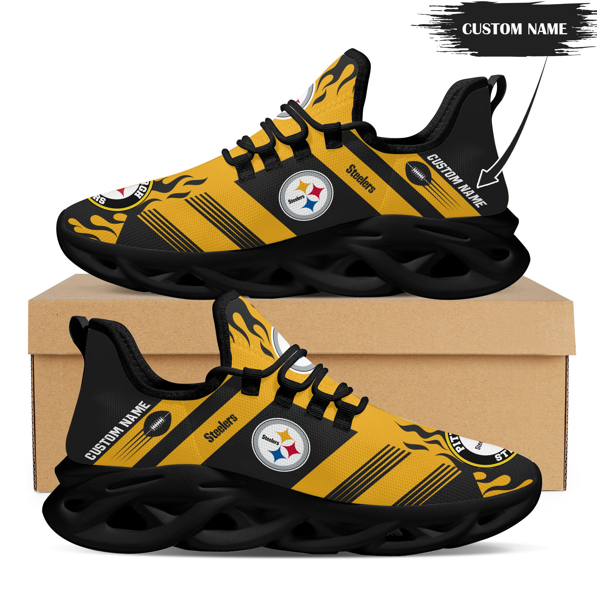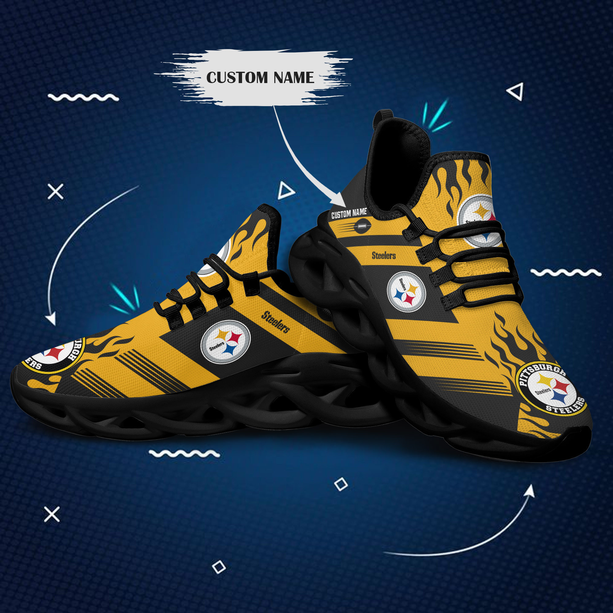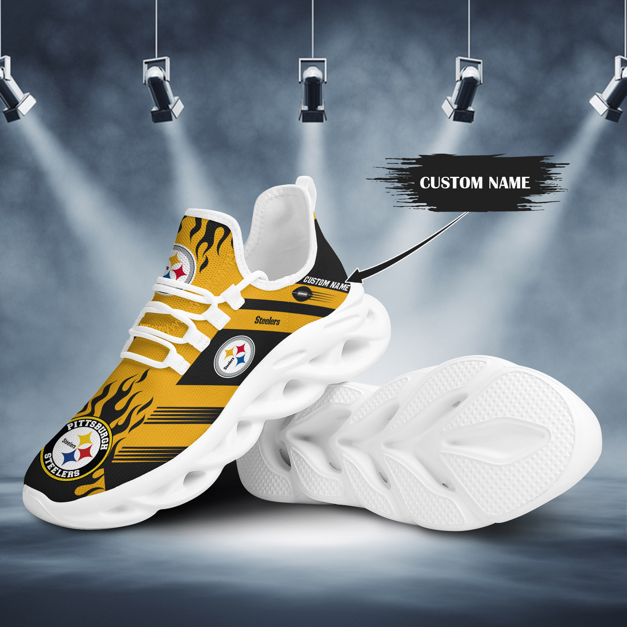 Pittsburgh Steelers NFL Max Soul Shoes Sneakers Printed White And Black Sole For Men And Women