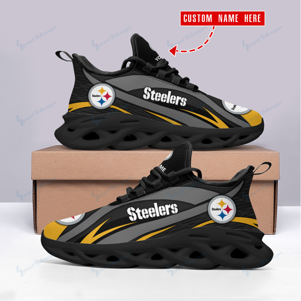 Pittsburgh Steelers NFL Max Soul Shoes Sneakers Printed White And Black Sole For Men And Women