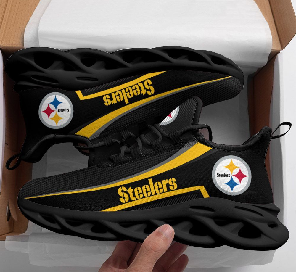 Pittsburgh Steelers NFL Max Soul Shoes Sneakers Printed White And Black Sole For Men And Women
