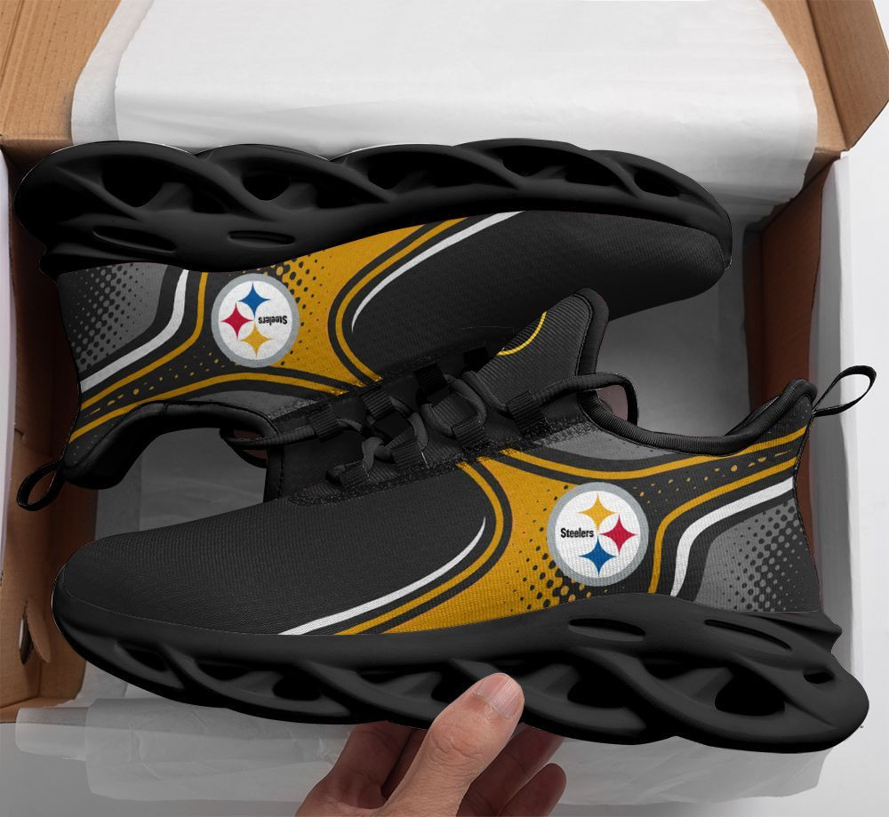 Pittsburgh Steelers NFL Max Soul Shoes Sneakers Printed White And Black Sole For Men And Women