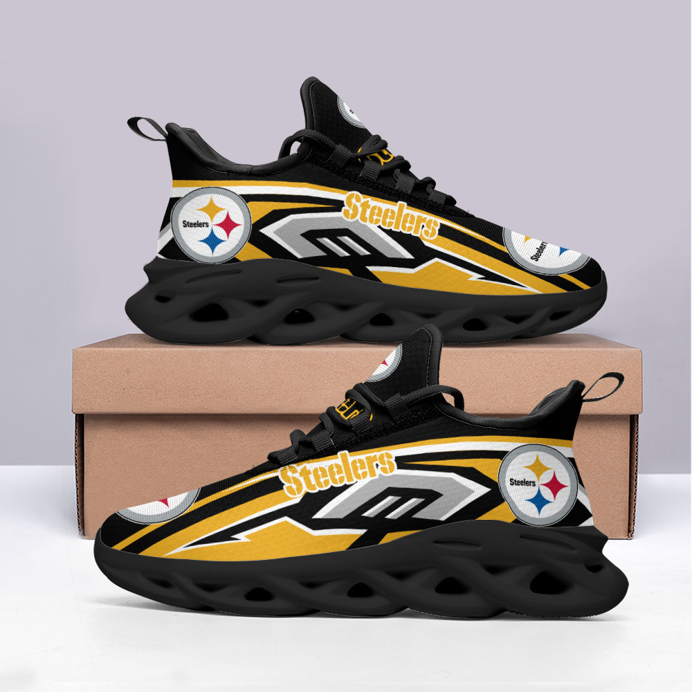 Pittsburgh Steelers NFL Max Soul Shoes Sneakers Printed White And Black Sole For Men And Women