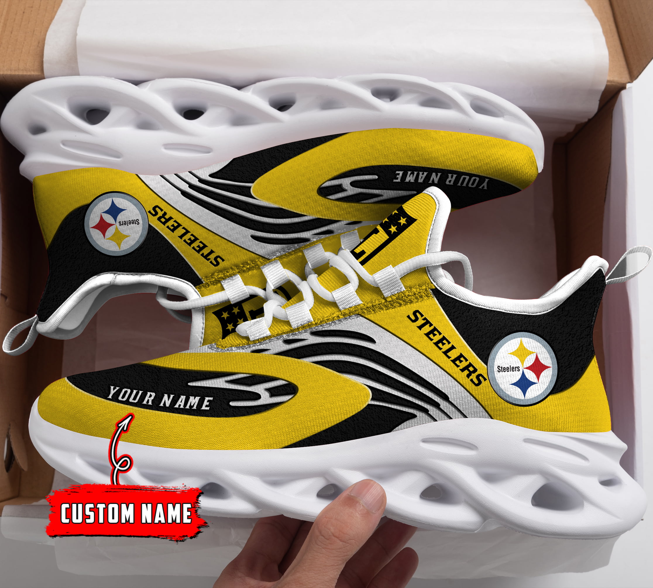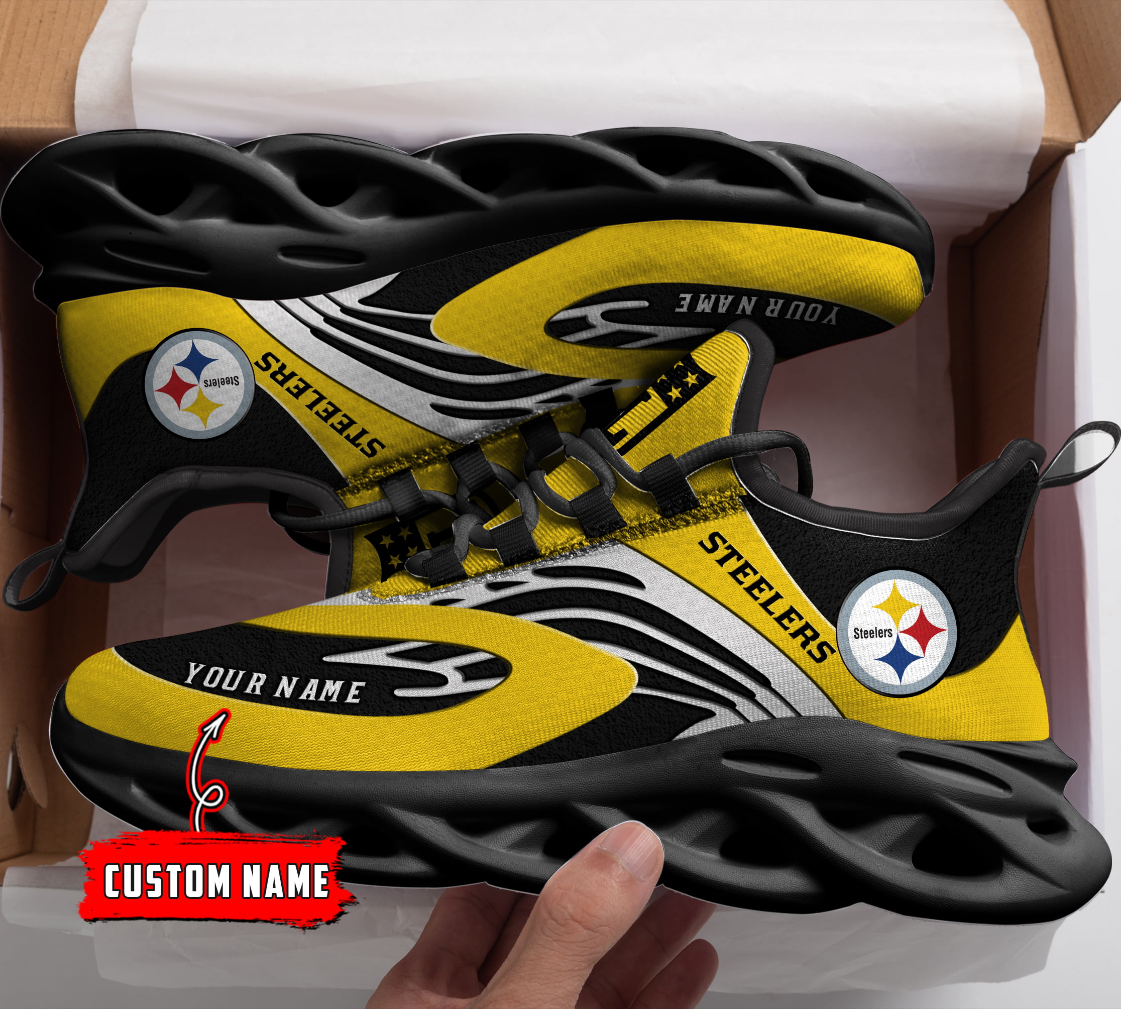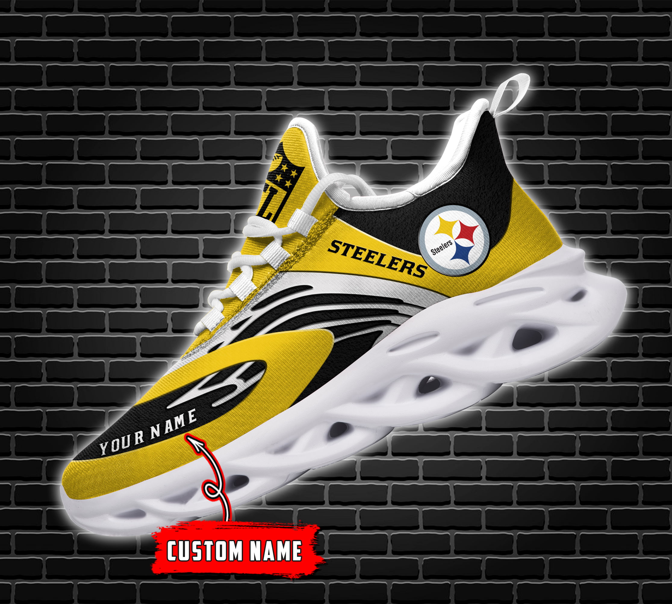 Pittsburgh Steelers NFL Max Soul Shoes Sneakers Printed White And Black Sole For Men And Women
