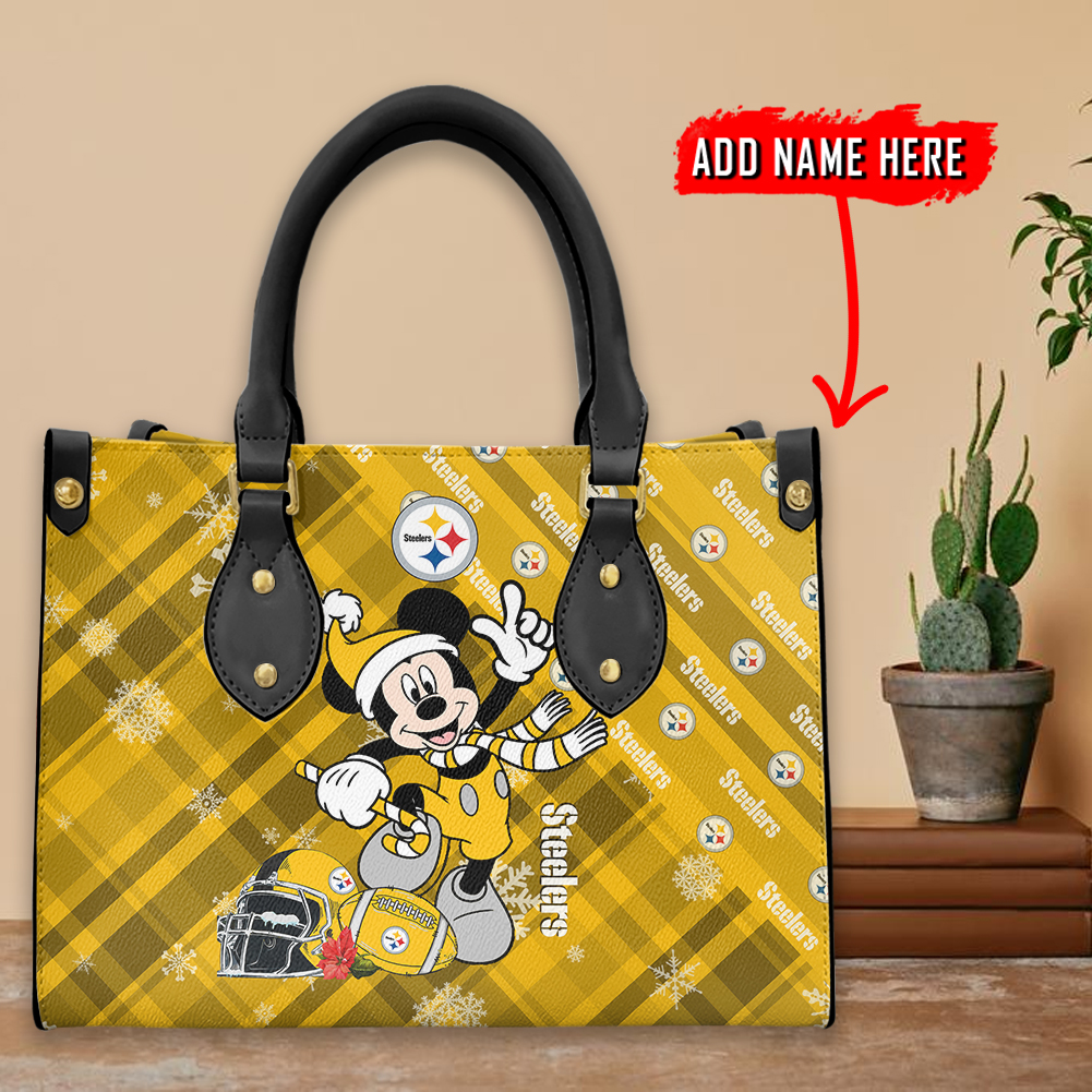 Pittsburgh Steelers Printed Custom Christmas Leather Hand Bag For Women Sport Wear Fans Black Strap