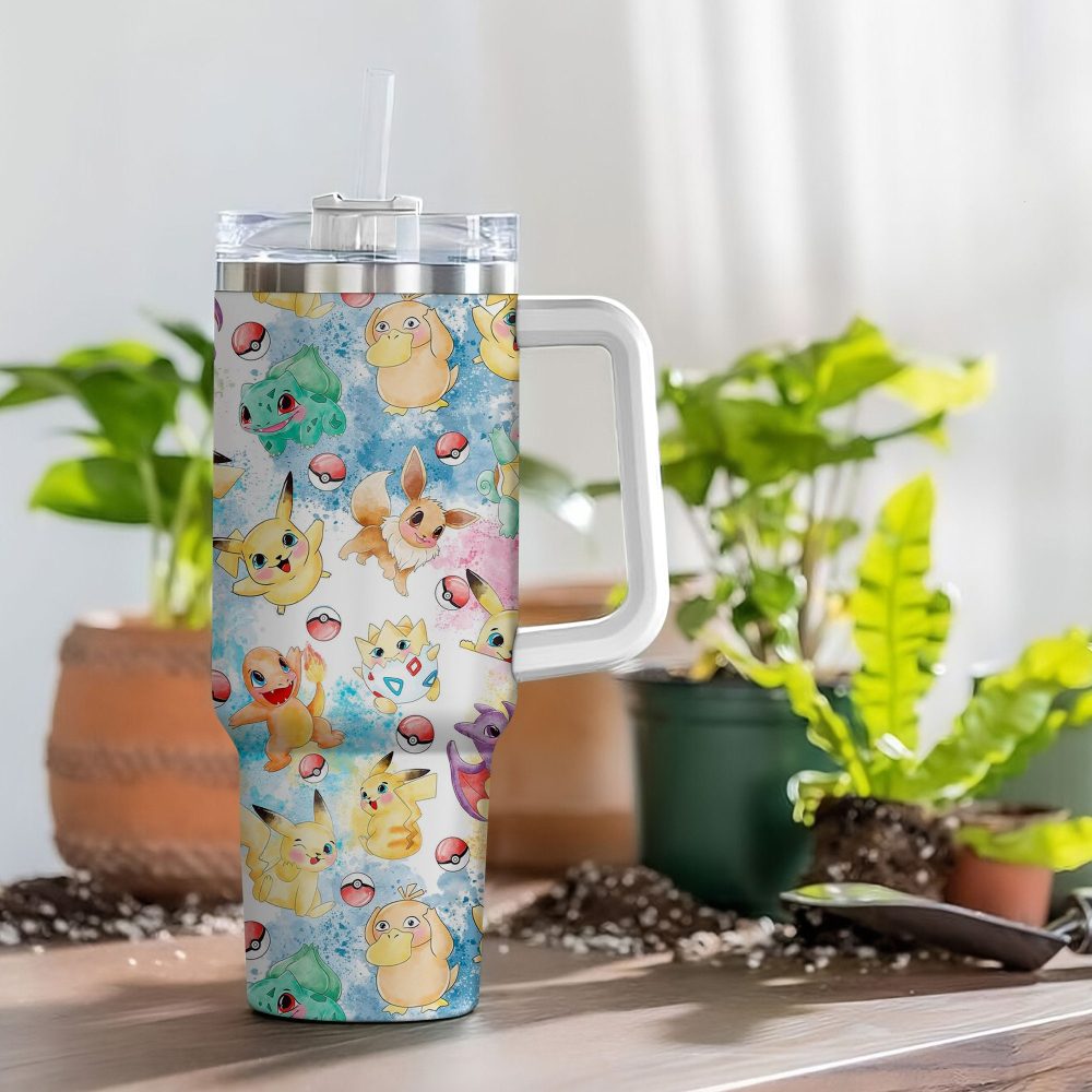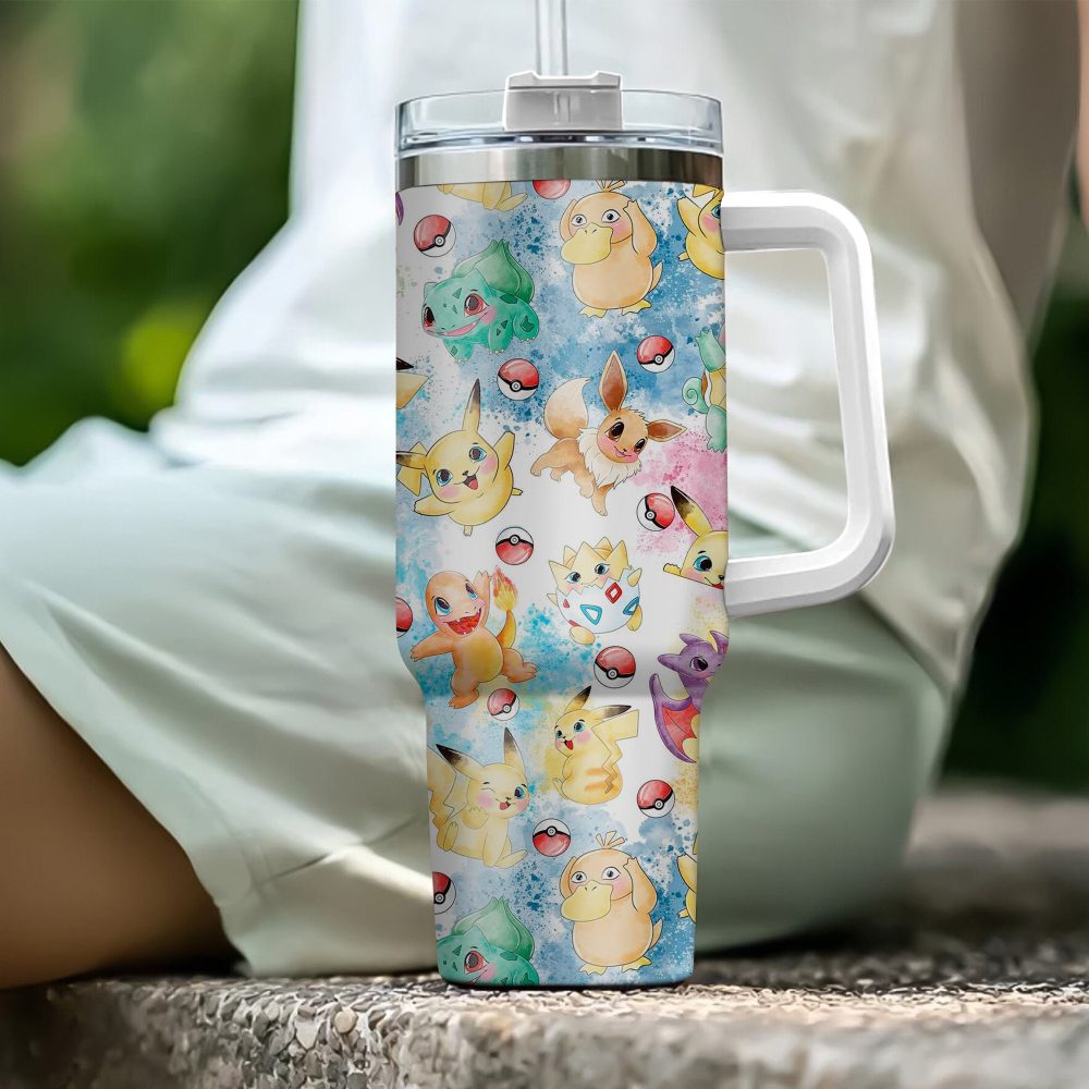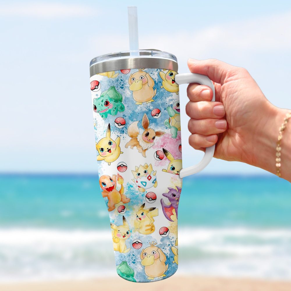 Pokemon Games Custom Stanley Quencher 40Oz Stainless Steel Tumbler With Handle