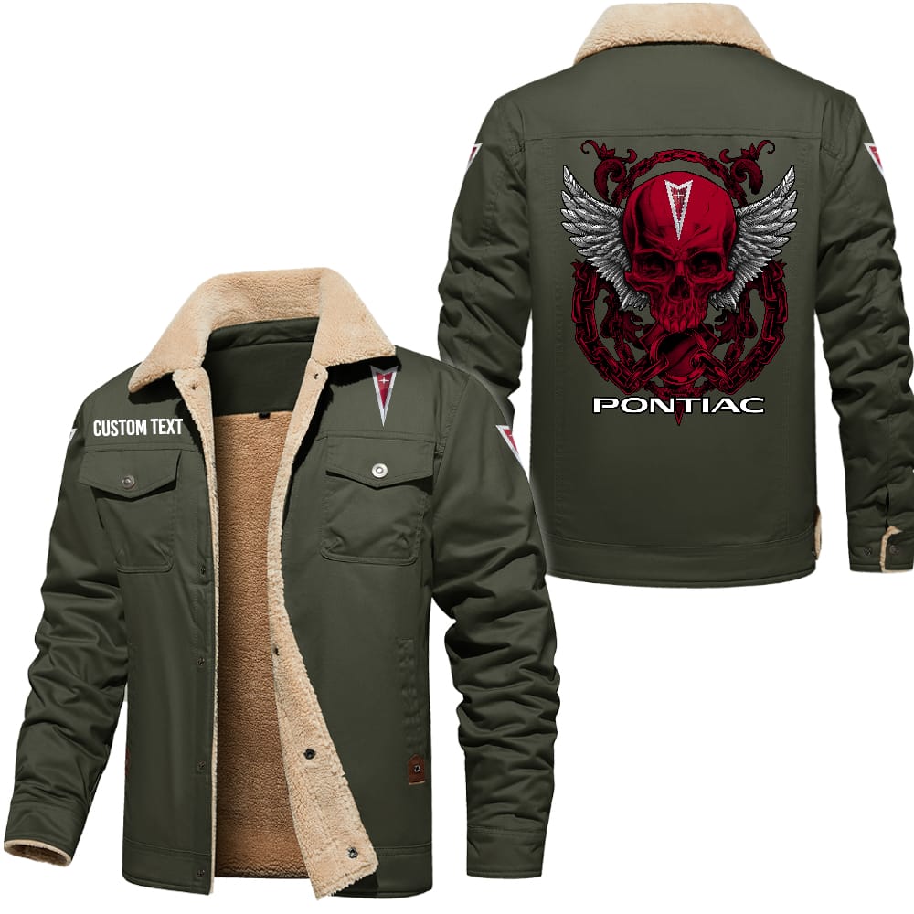 Pontiac Custom Name Skull Design Cargo Fleece Lined Cotton Jacket