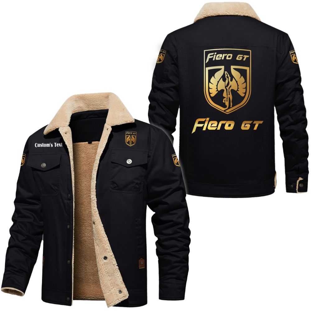 Pontiac Fiero Golden Logo Custom Cargo Fleece Lined Cotton Jacket Black