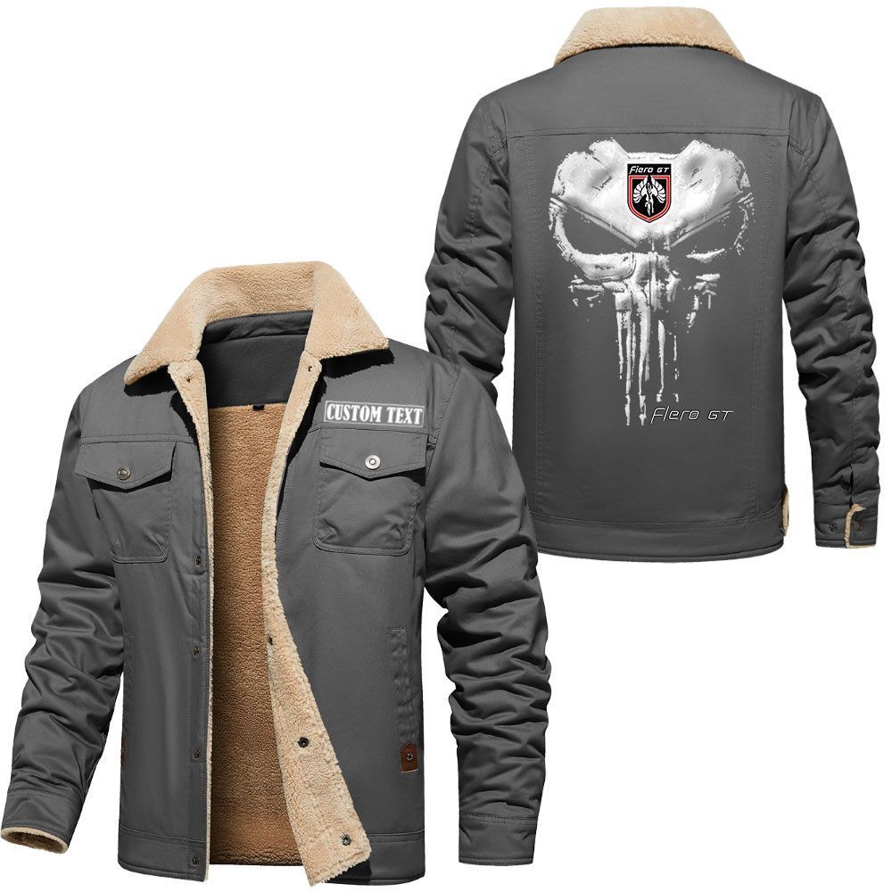 Pontiac Fiero Logo Custom Name Cargo Fleece Lined Cotton Jacket Personalized Outerwear with Punisher Skull Design