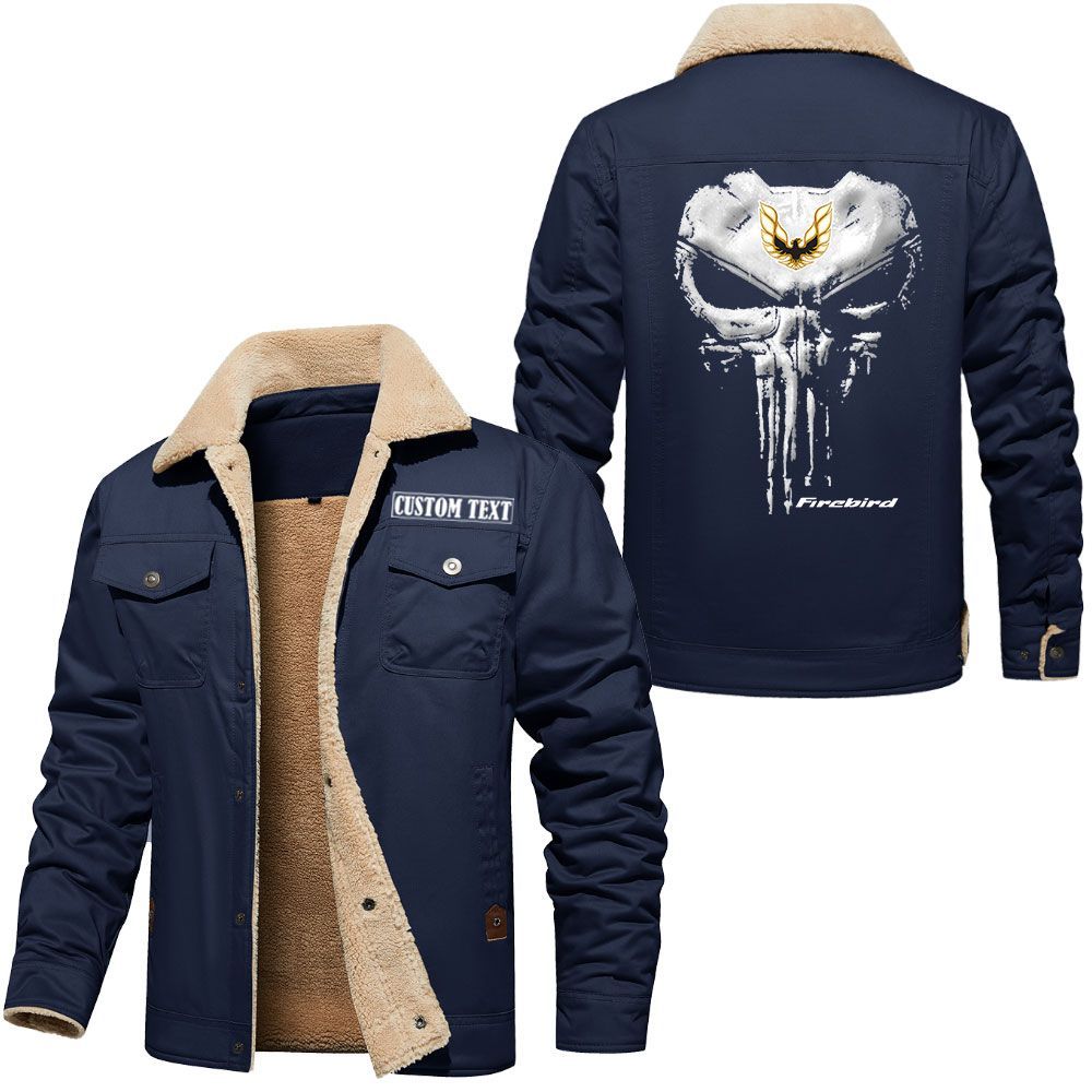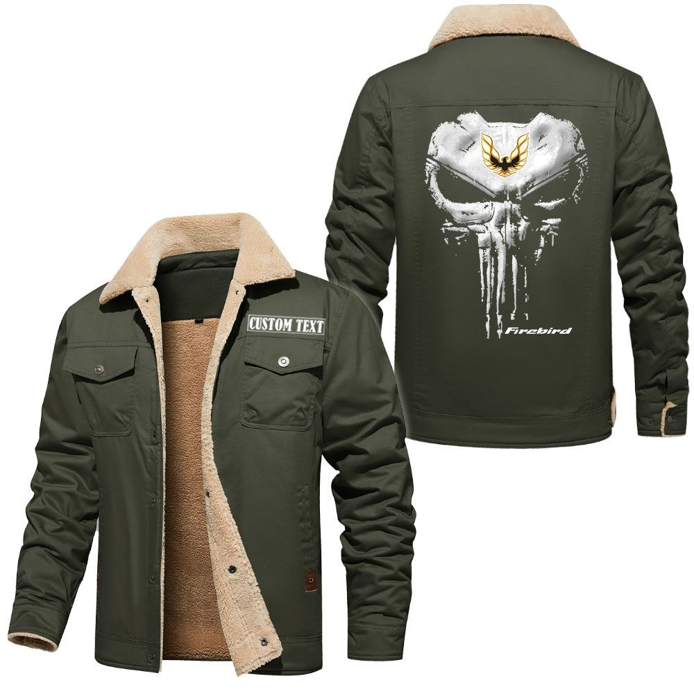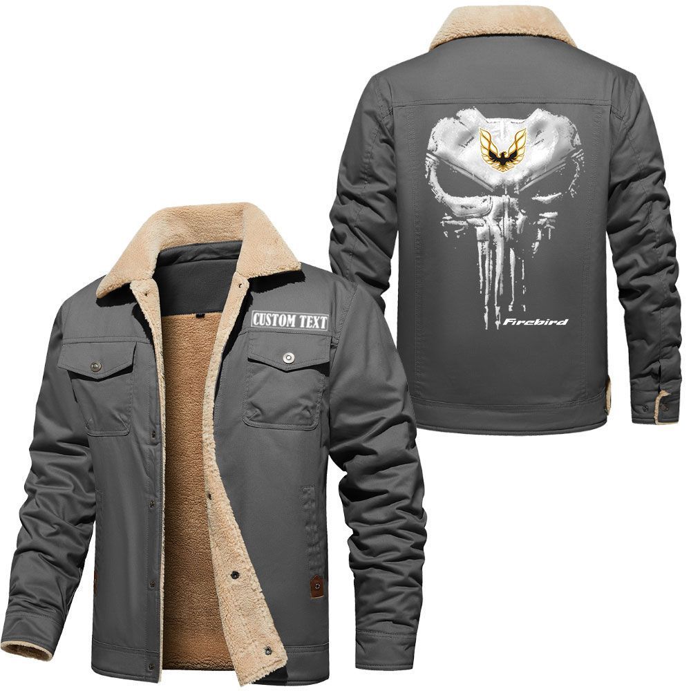 Pontiac Firebird Logo Custom Name Cargo Fleece Lined Cotton Jacket Personalized Outerwear with Punisher Skull Design