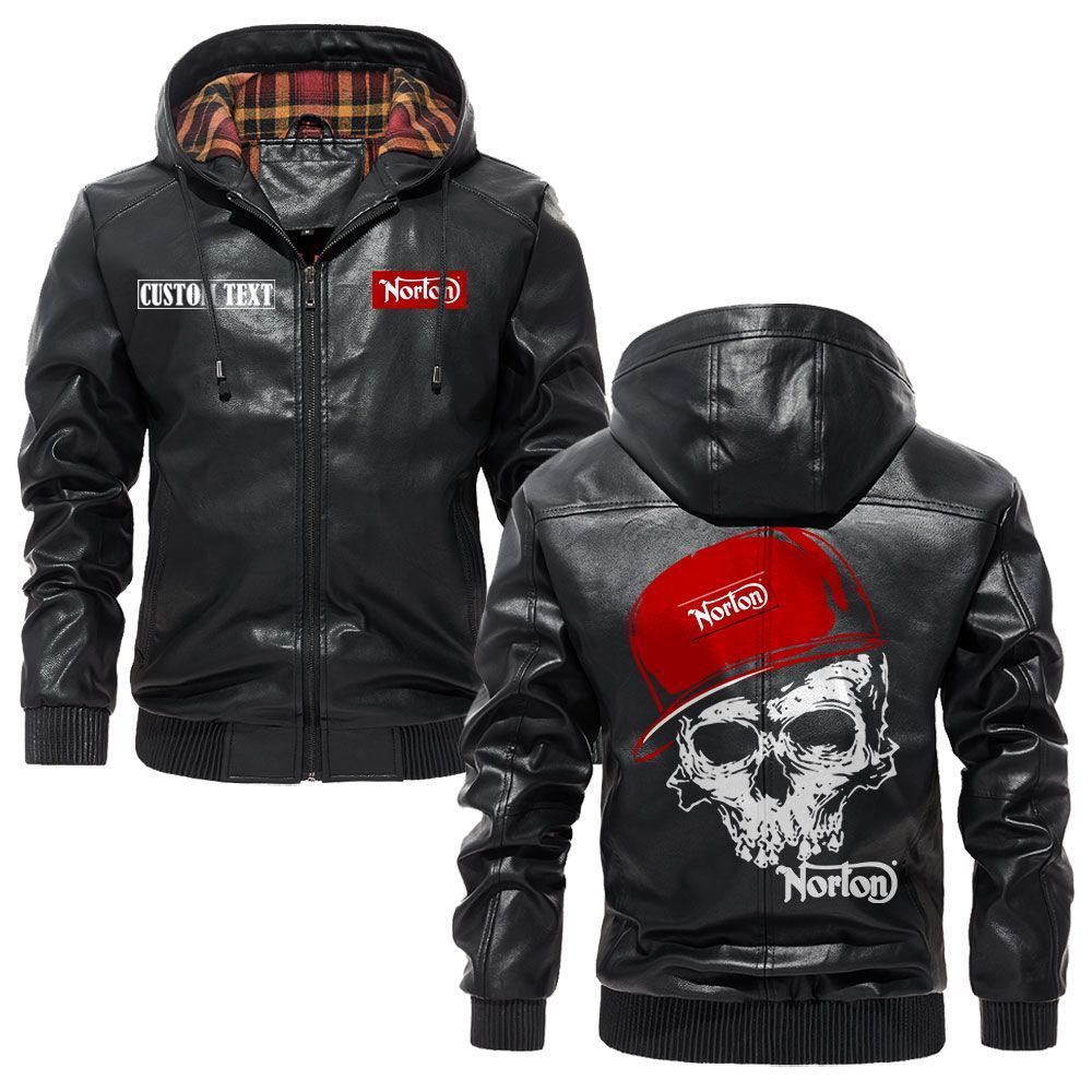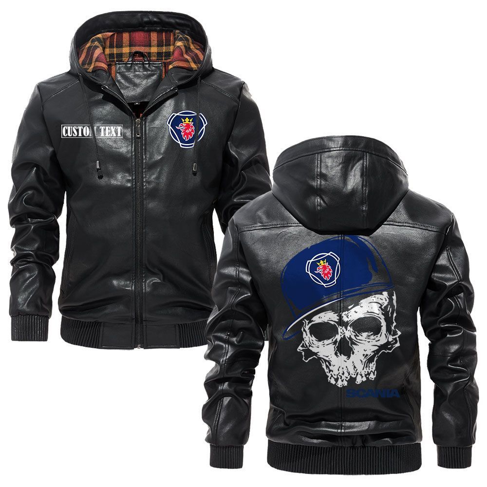 Pontiac Logo Custom Name Leather Hoodie Jacket Warm Outerwear with Skull Design