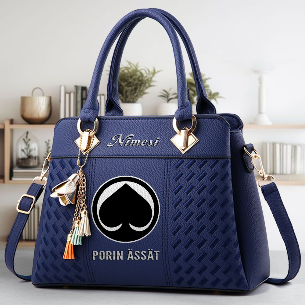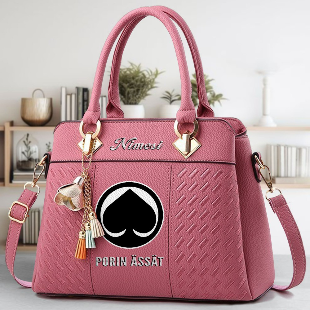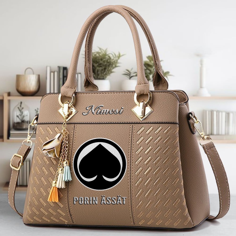 Porin Assat Logo Crossbody Zip Hand Bag With Tassel Custom Name For Women