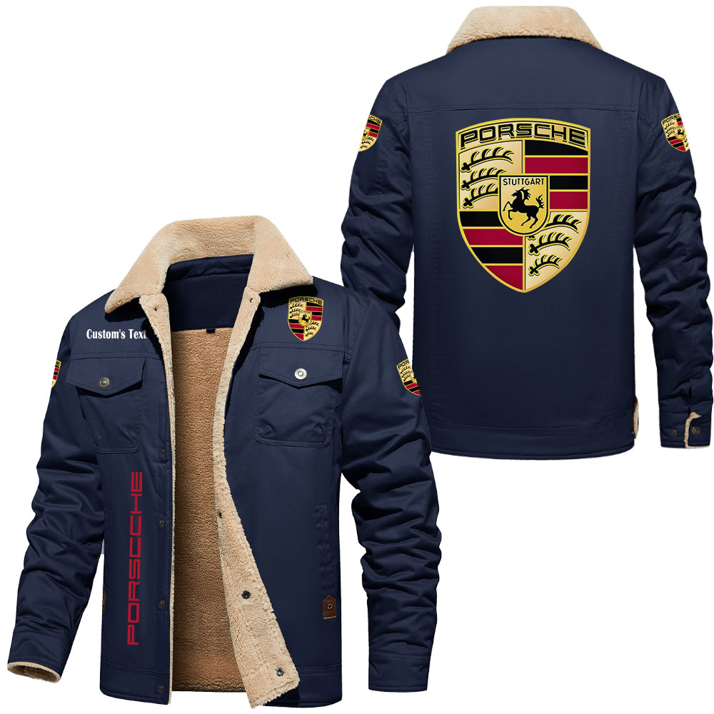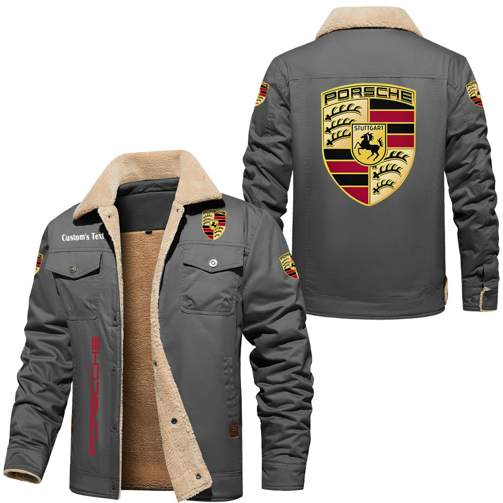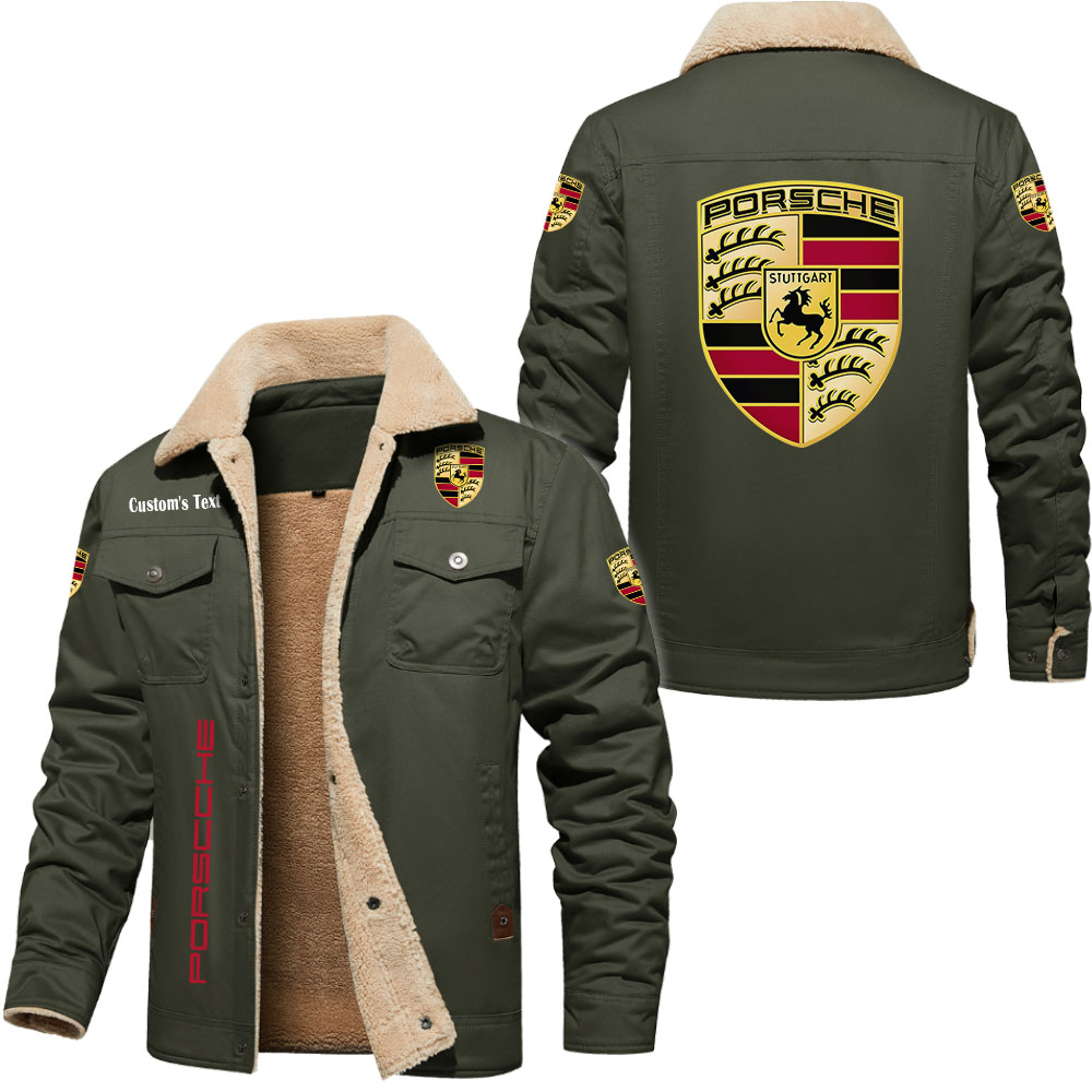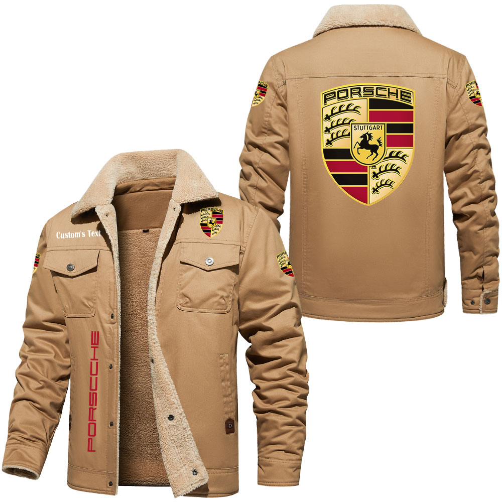 Porsche Logo Custom Text Cargo Fleece Lined Cotton Jacket