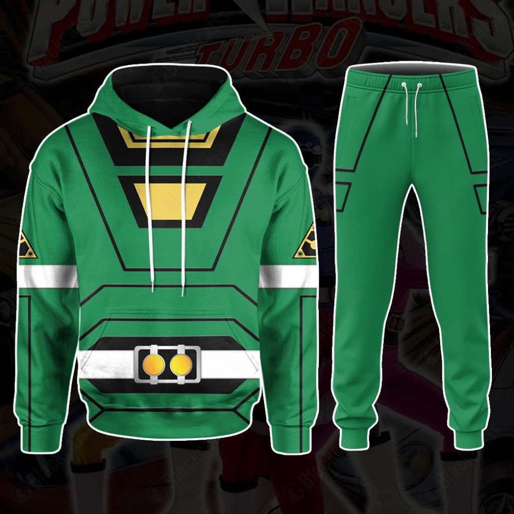 Power Rangers Turbo Green Ranger Costume Cosplay Hoodie Tracksuiit Sweatpants Cosplaytracksuit