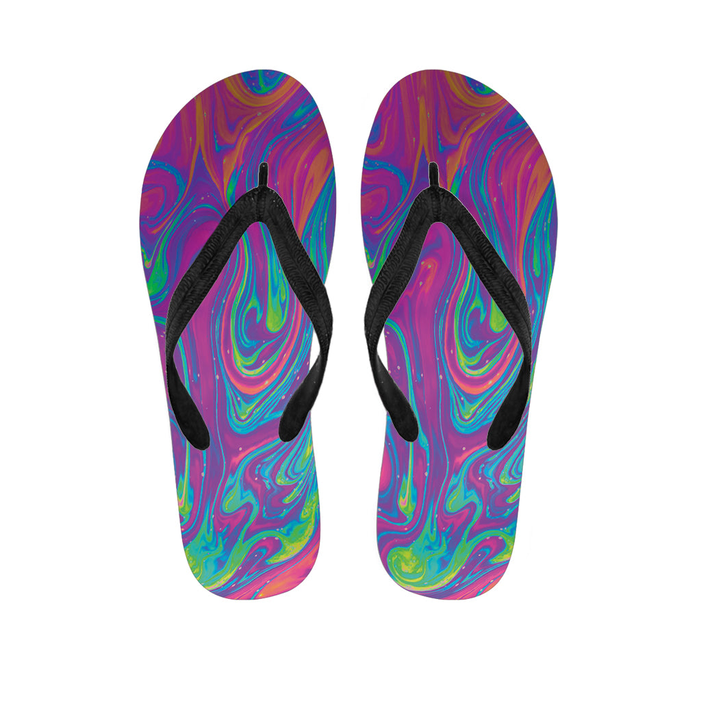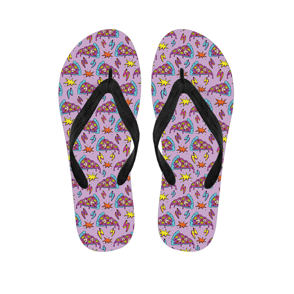 Purple Alien Face Pattern Print Flip Flops For Men Women