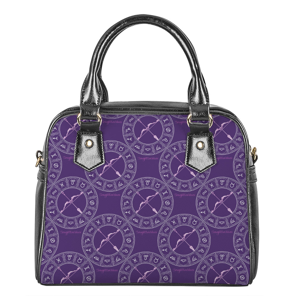 Purple Gemini Zodiac Pattern Print Shoulder Handbag