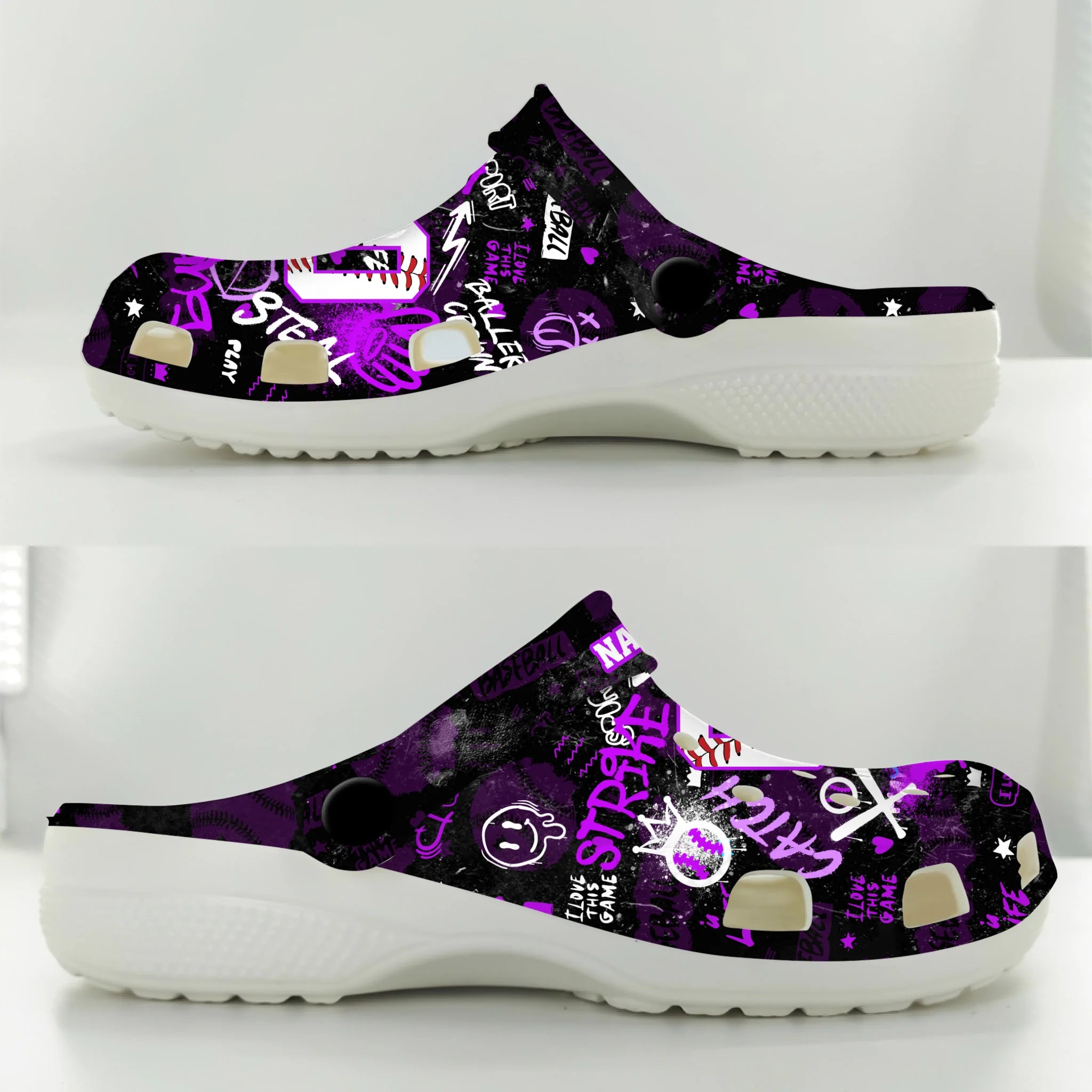 Purple Tag Out Baseball Sport Custom Crocs And Clogs Shoes Printed For Men Women And Kids