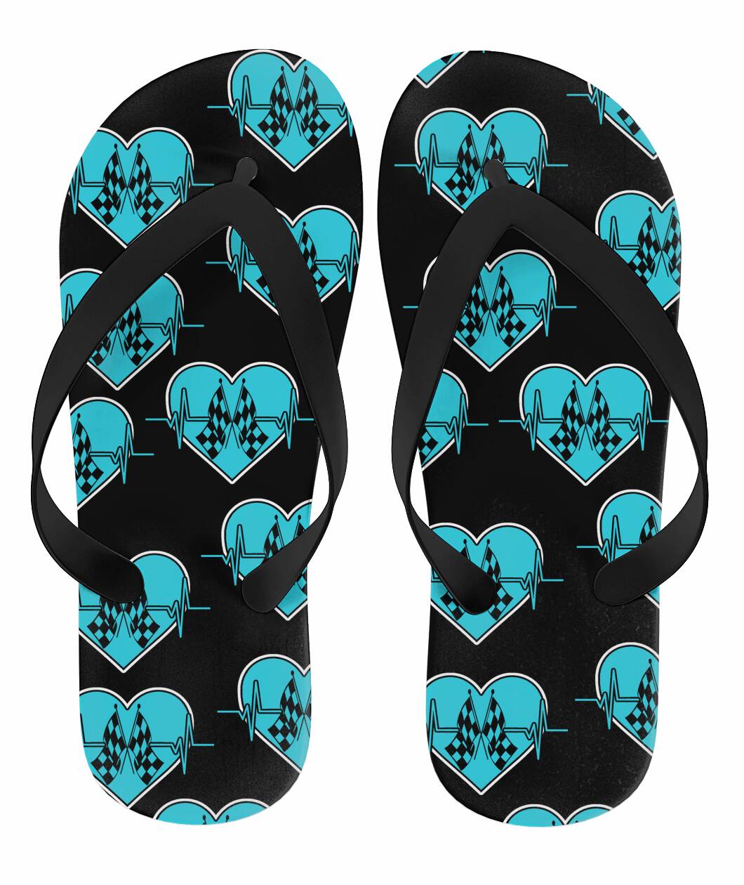 Racing Heartbeat Flip Flops Black Strap Purple