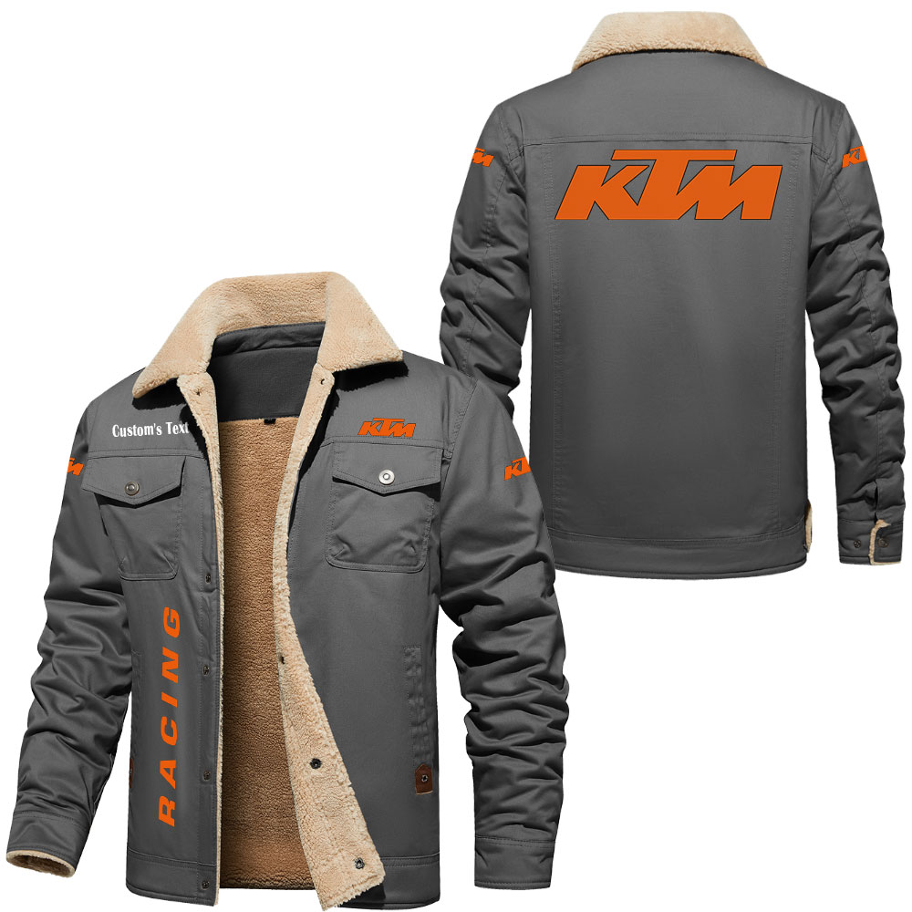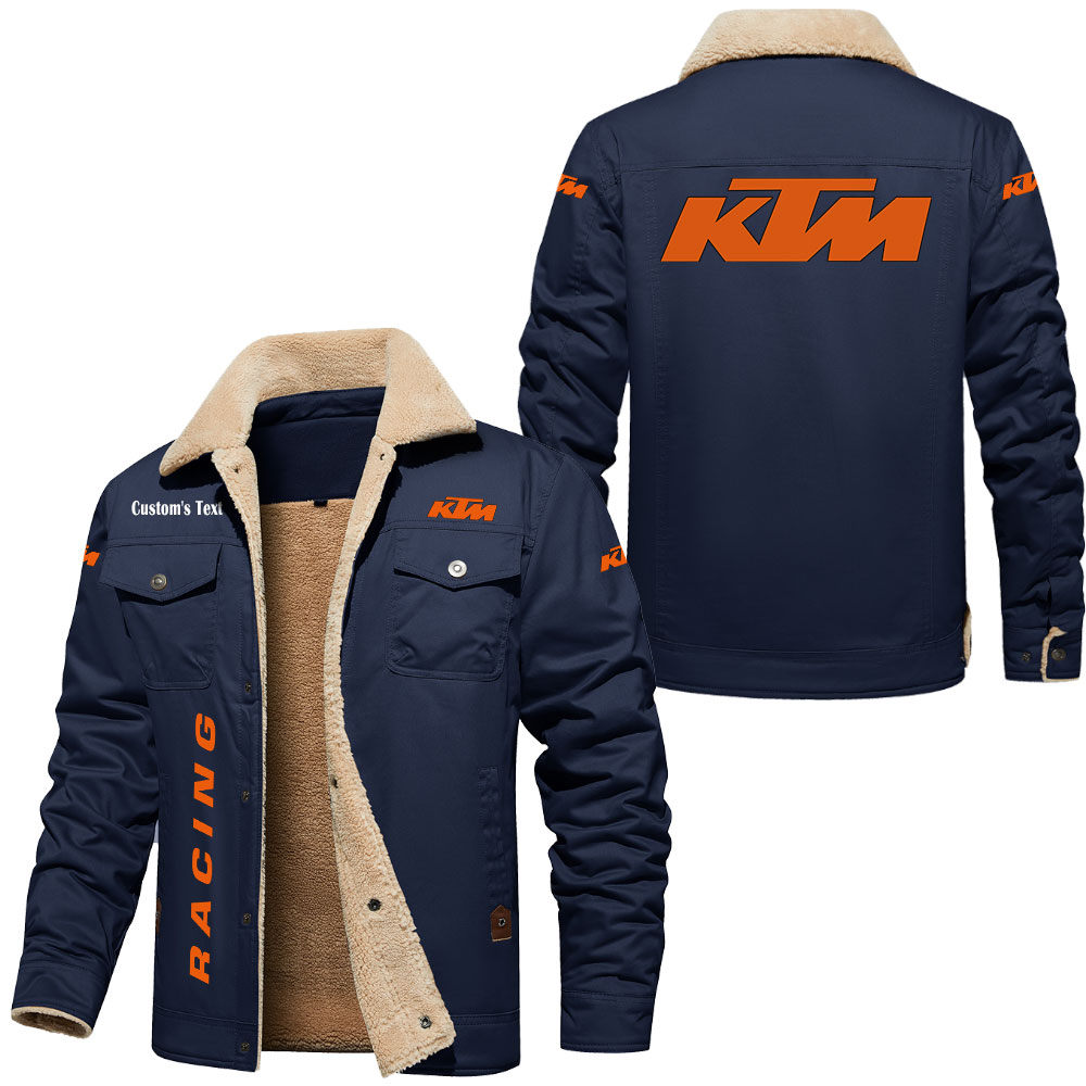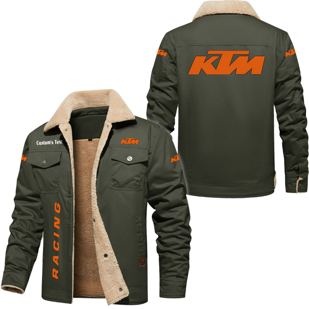 Racing KTM Logo Custom Text Cargo Fleece Lined Cotton Jacket