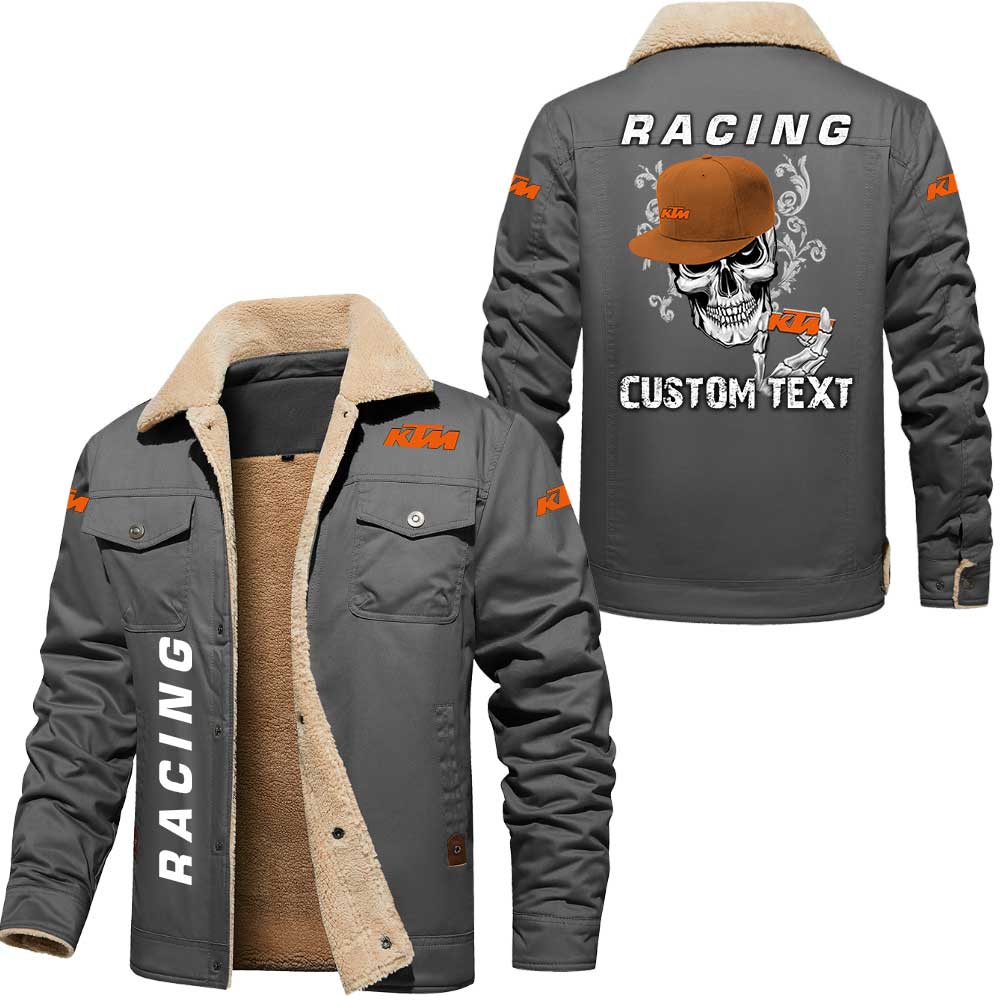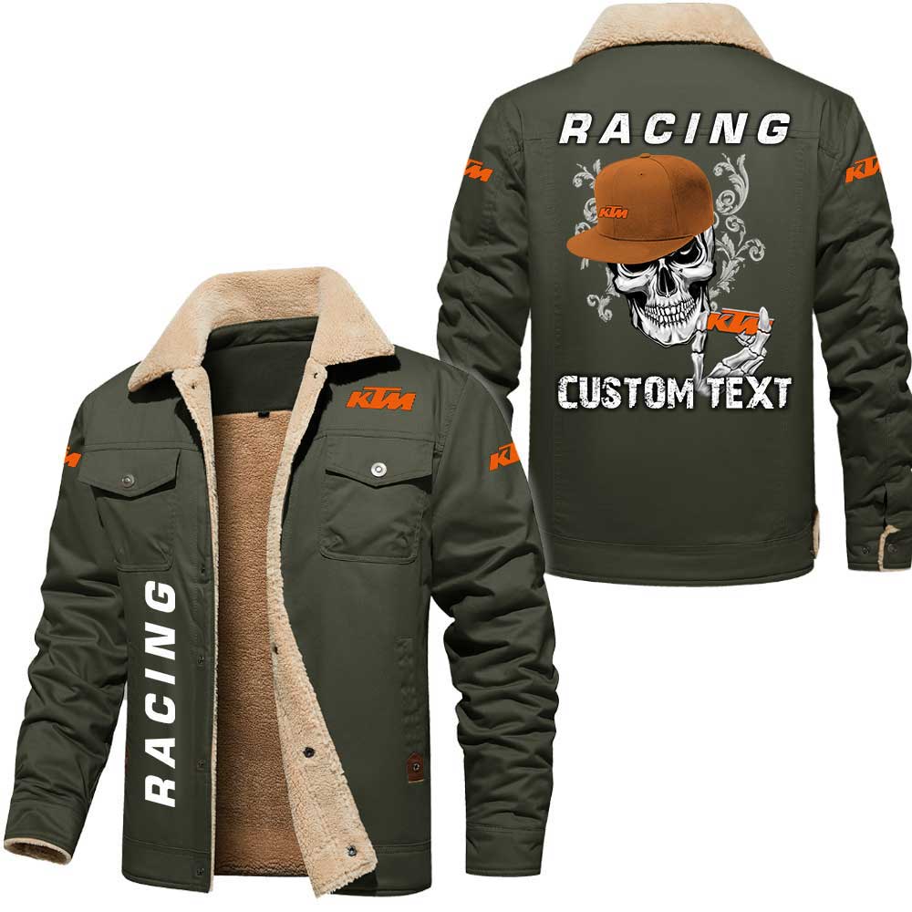 Racing KTM Skull Custom Name Cargo Fleece Lined Cotton Jacket