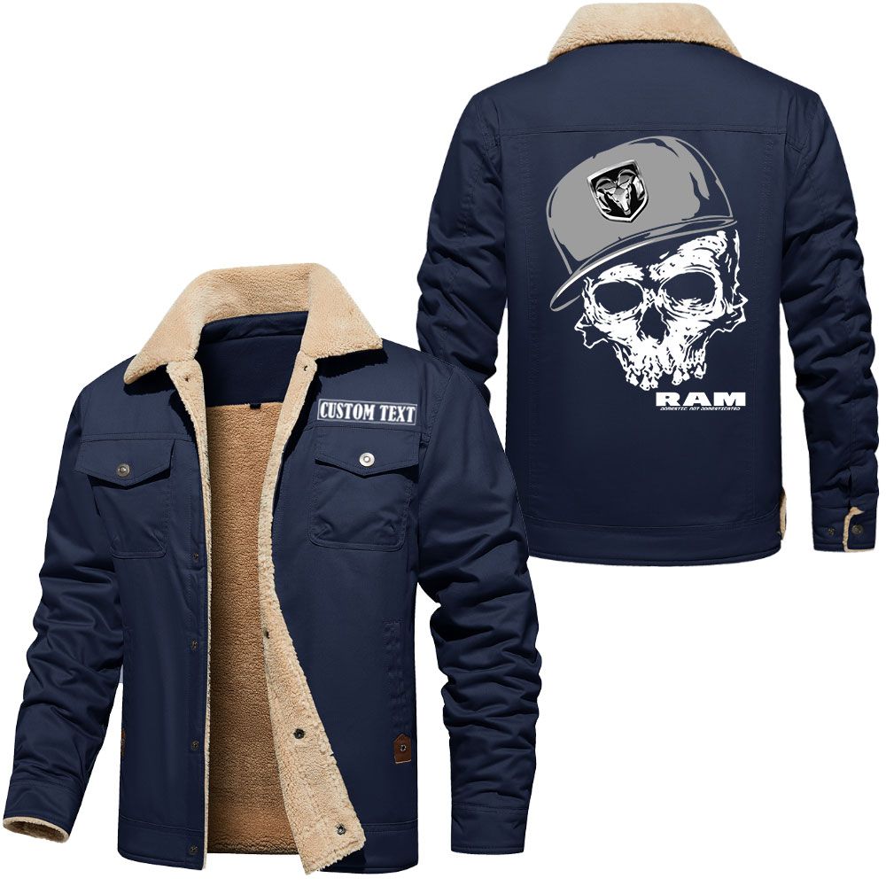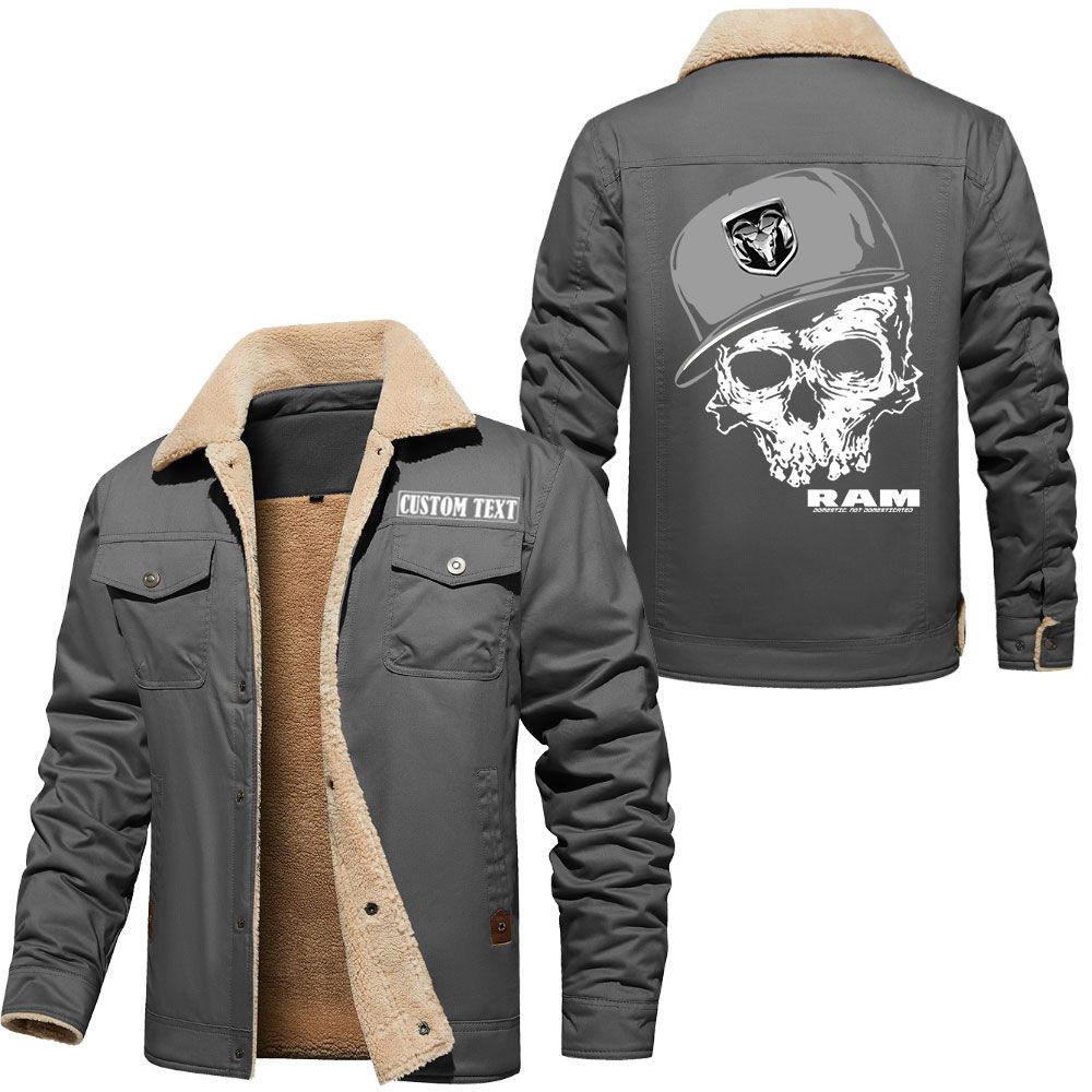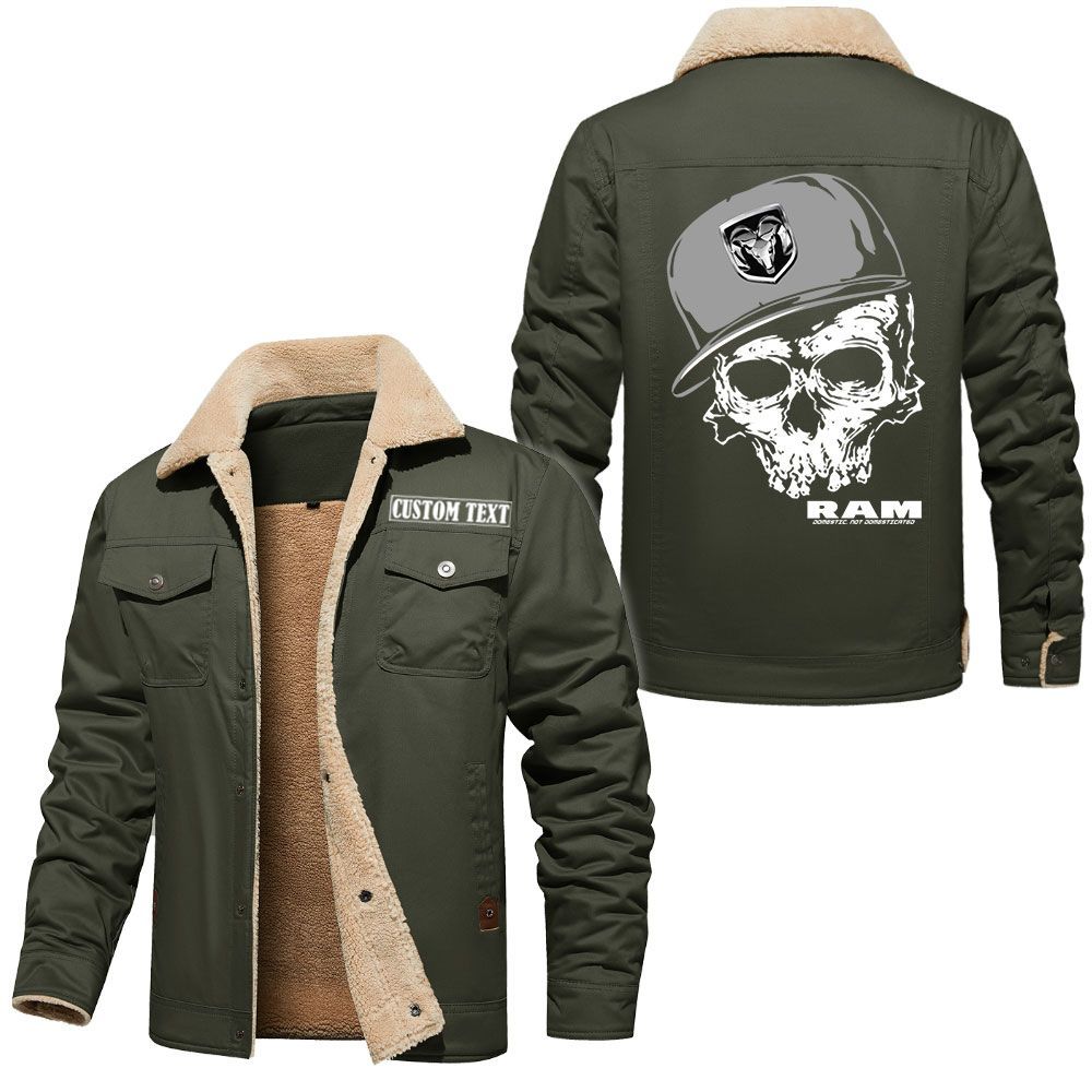 Ram Logo Custom Name Cargo Fleece Lined Cotton Jacket Personalized Outerwear with Skull Design