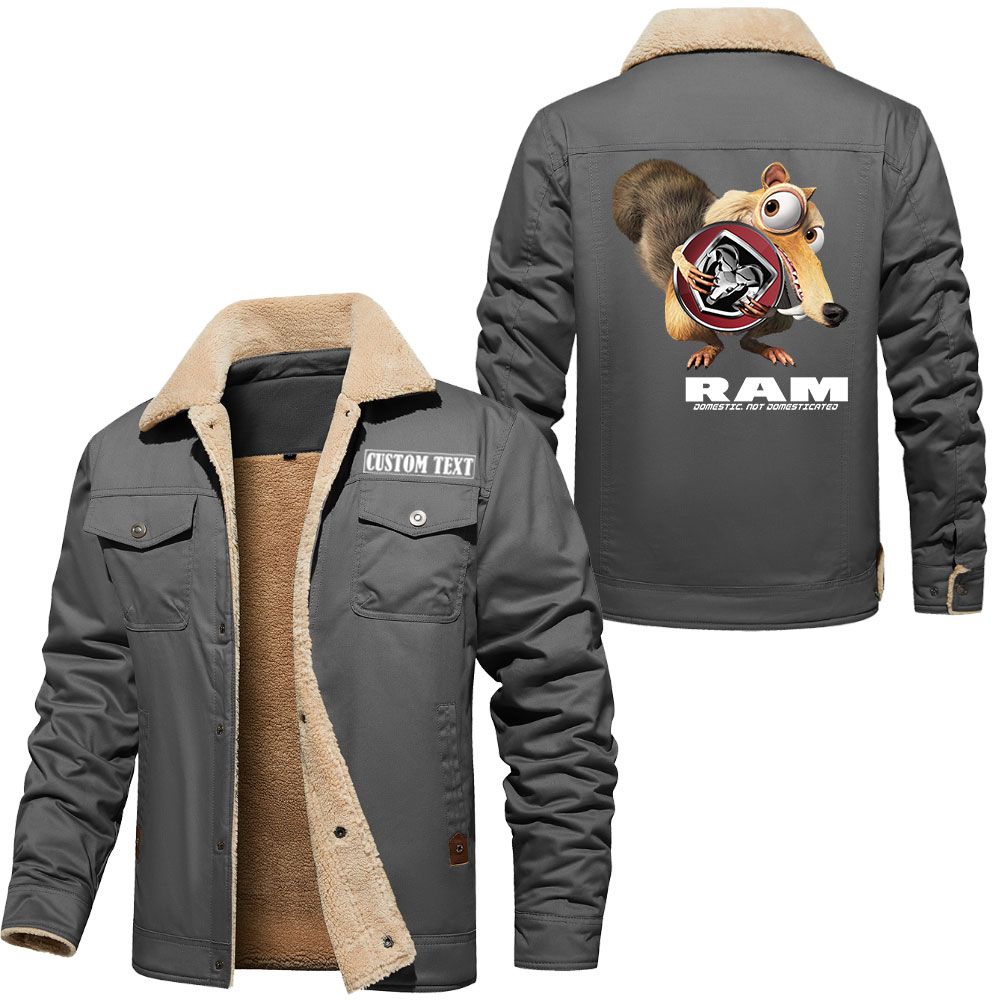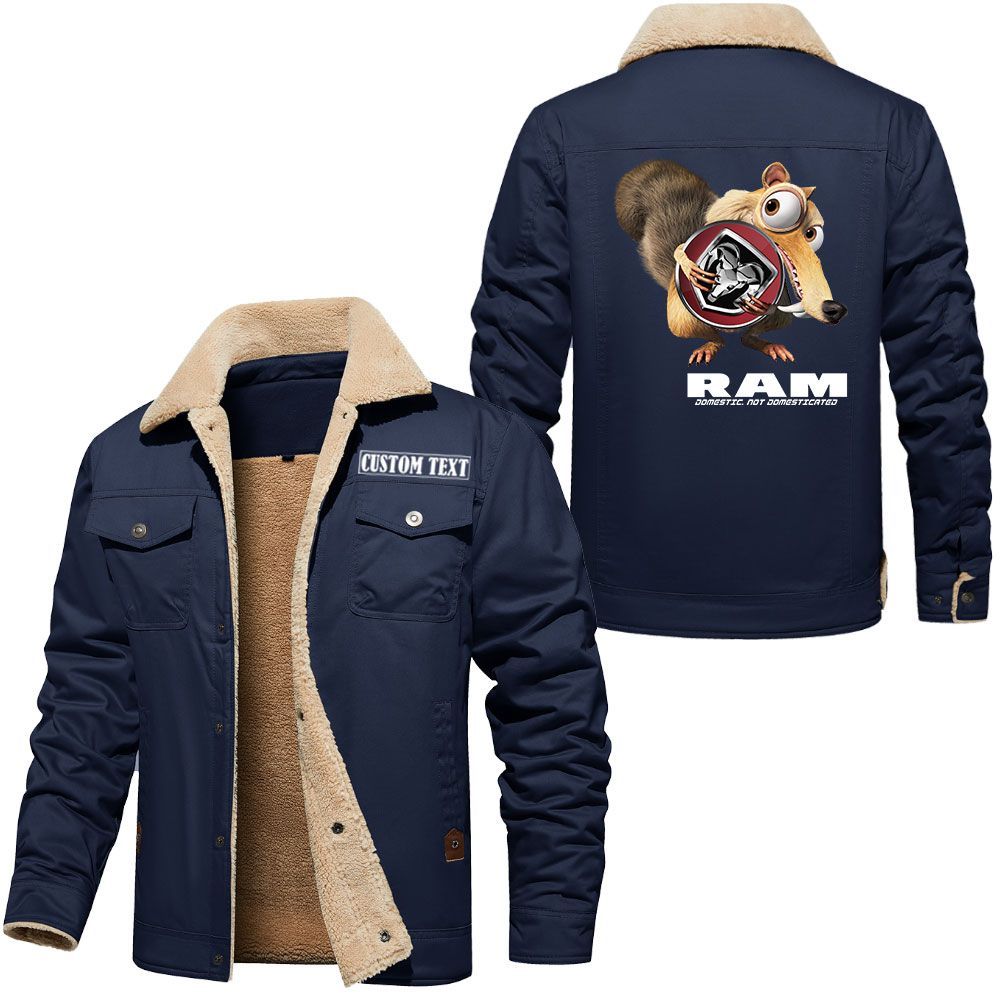 Ram Logo Custom Name Cargo Fleece Lined Cotton Jacket Scrat Ice Age Design Personalized Outerwear