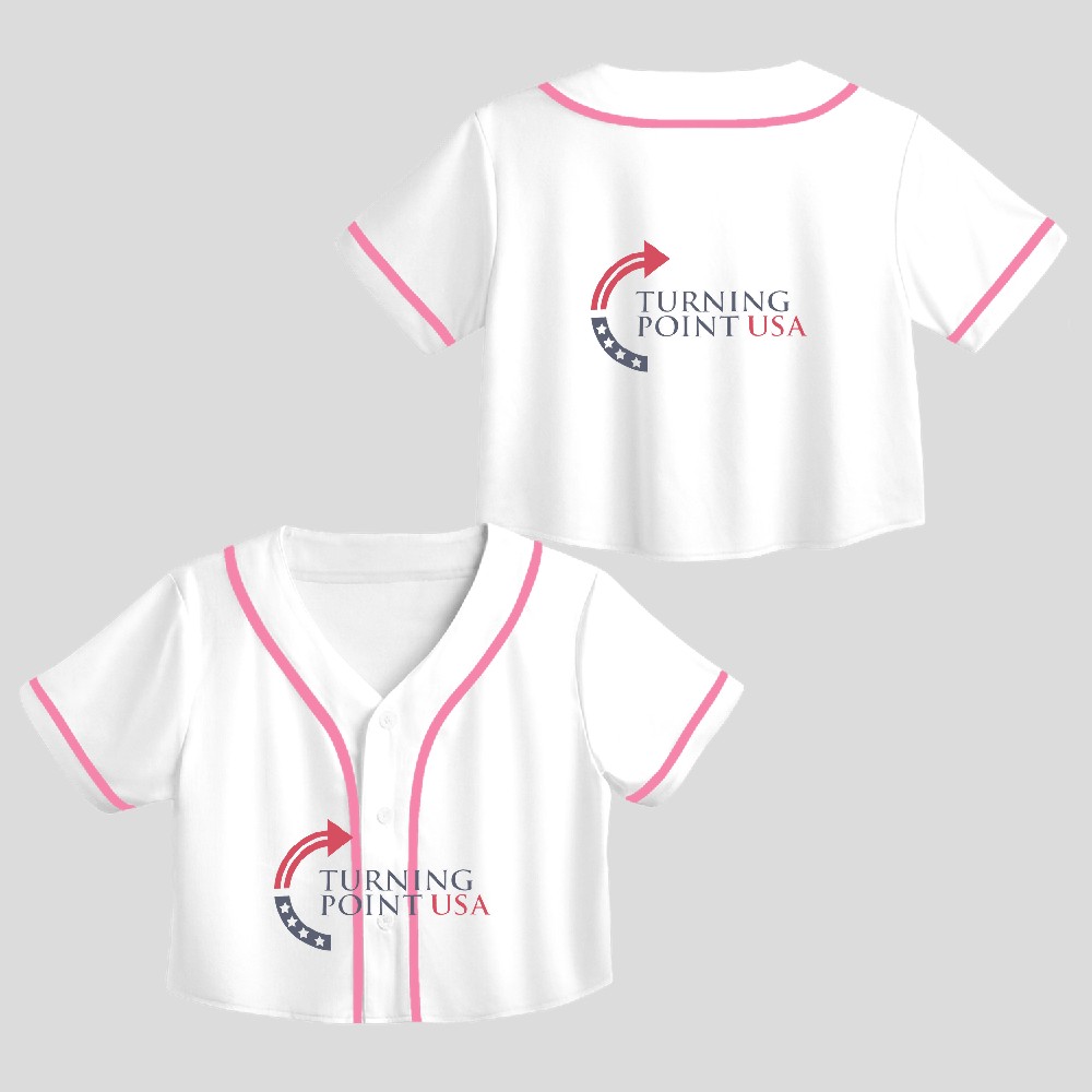 Rare Charlie Kirk Turning Point Usa White Crop Top Baseball Jersey