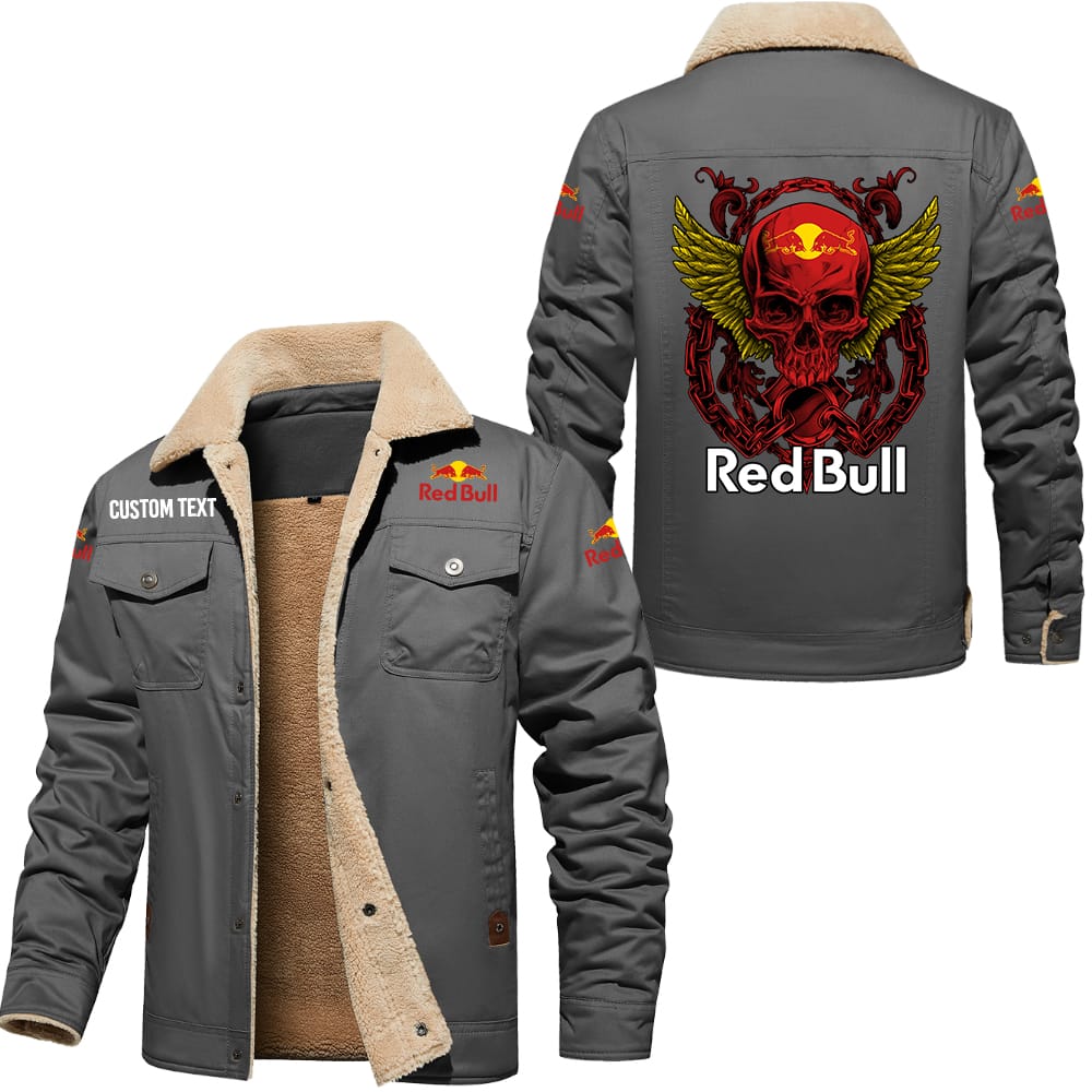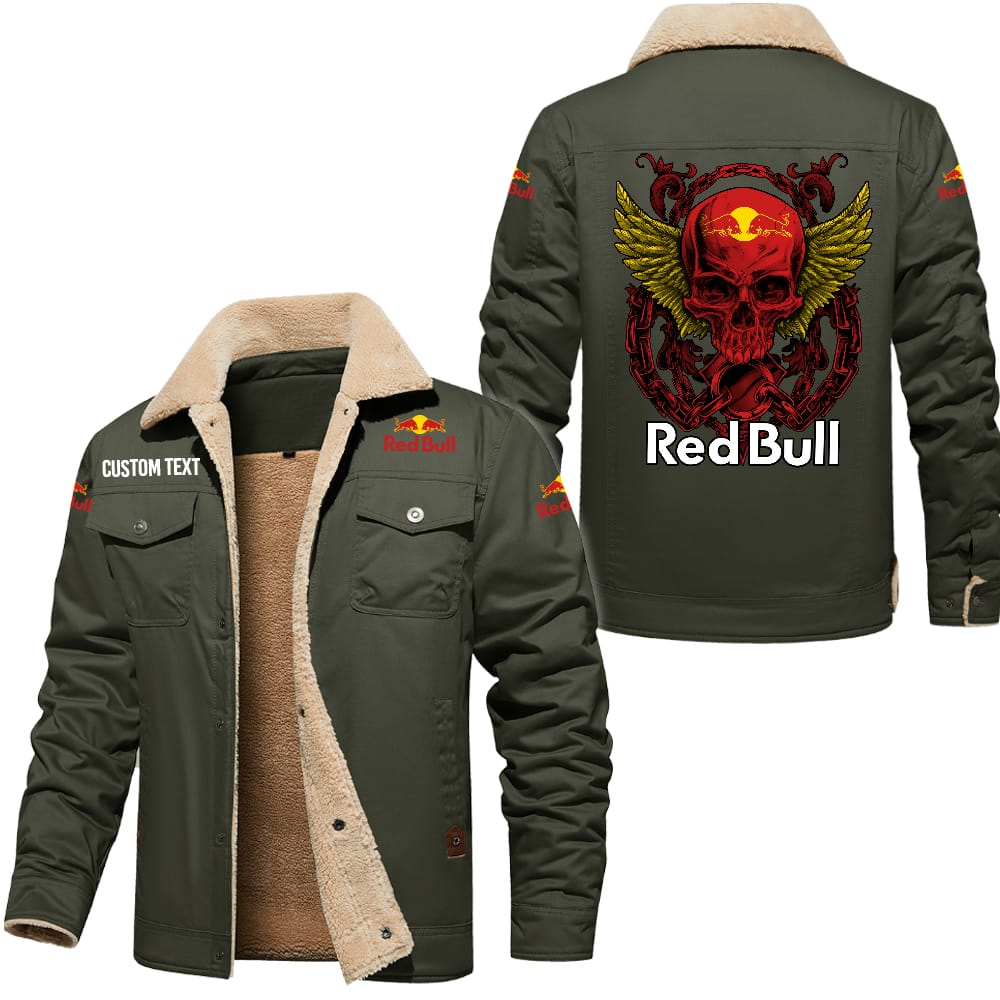 Red Bull Custom Name Skull Design Cargo Fleece Lined Cotton Jacket