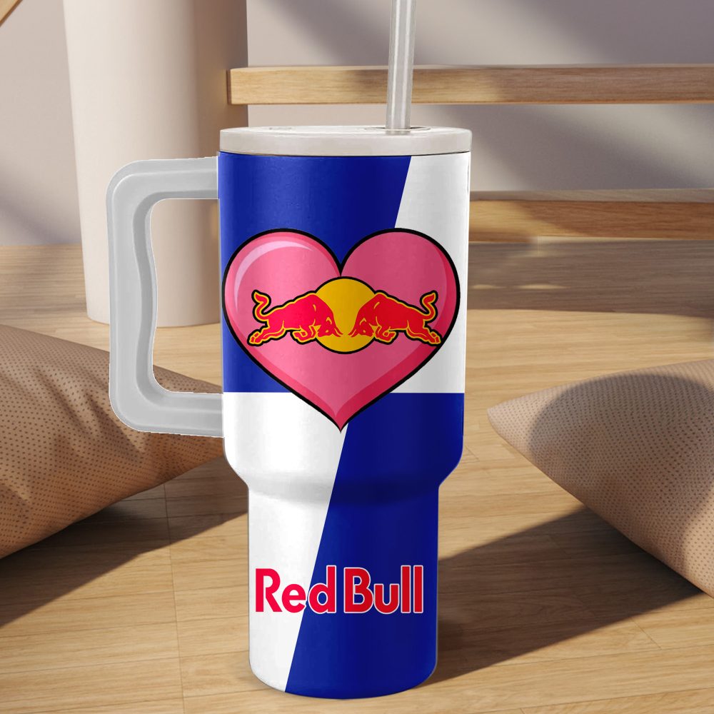 Red Bull Love At First Sip Custom Stanley Quencher 40Oz Stainless Steel Tumbler With Handle