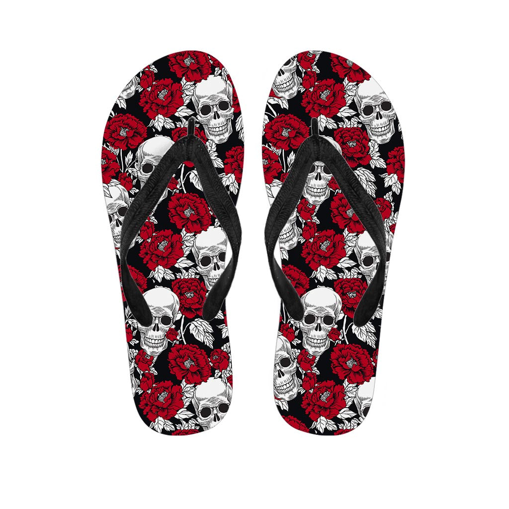Red Hibiscus Plumeria Pattern Print Flip Flops For Men Women