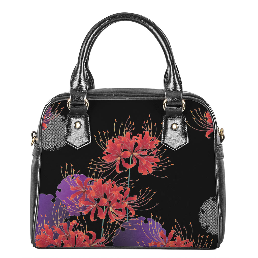Red Japanese Wave Pattern Print Shoulder Handbag