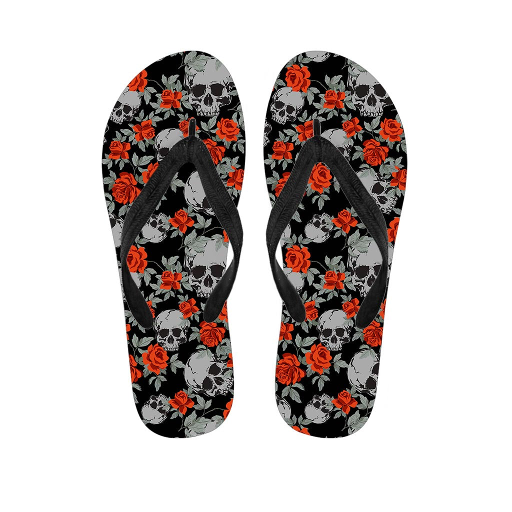 Red Peony Skull Pattern Print Flip Flops For Men Women