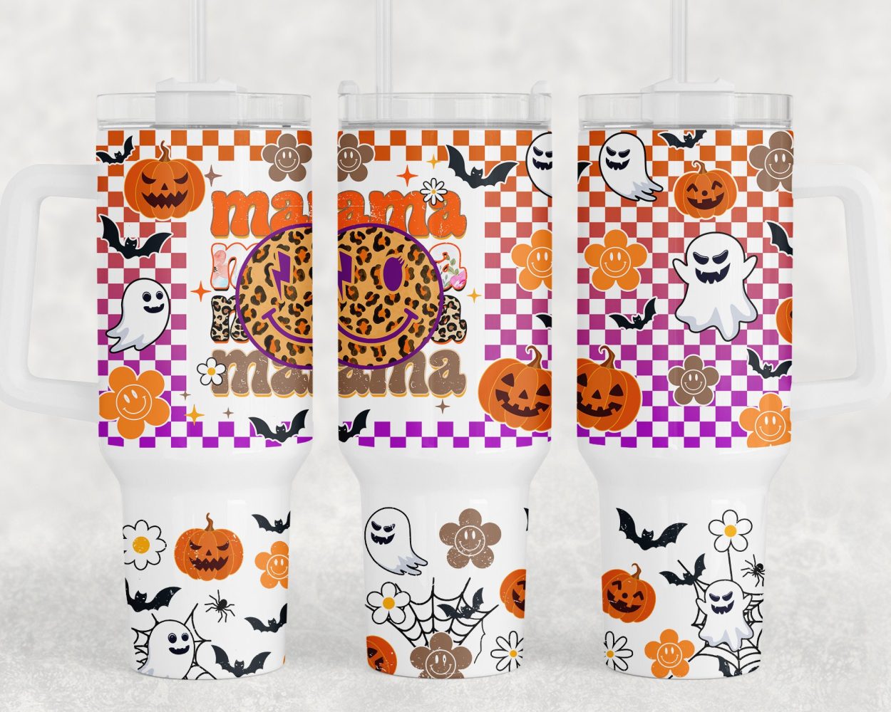 Retro Halloween Mama Custom Stanley Quencher 40Oz Stainless Steel Tumbler With Handle