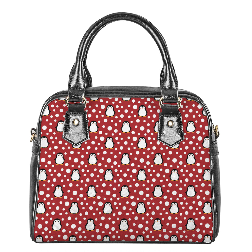 Rooster And Snowflake Pattern Print Shoulder Handbag